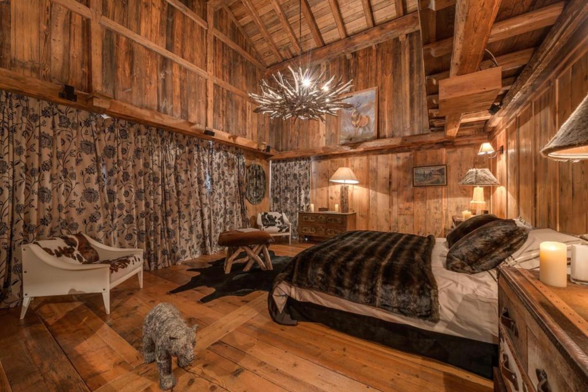 As you approach the chalet, its sheer scale is breathtaking and you find yourself in awe of its grandeur, illuminated by dazzling chandeliers hung from the eaves. The heated steps lead to the intricately carved door frame and the swimming pool can be seen through the panoramic window.