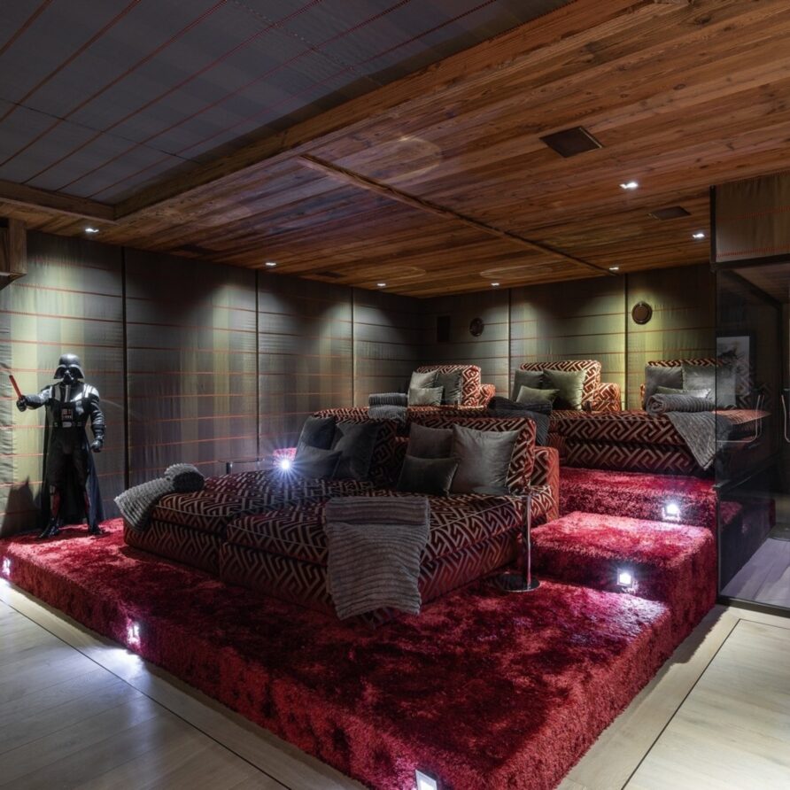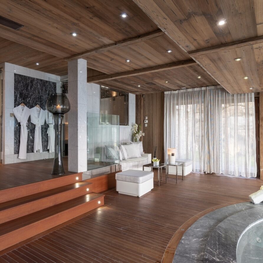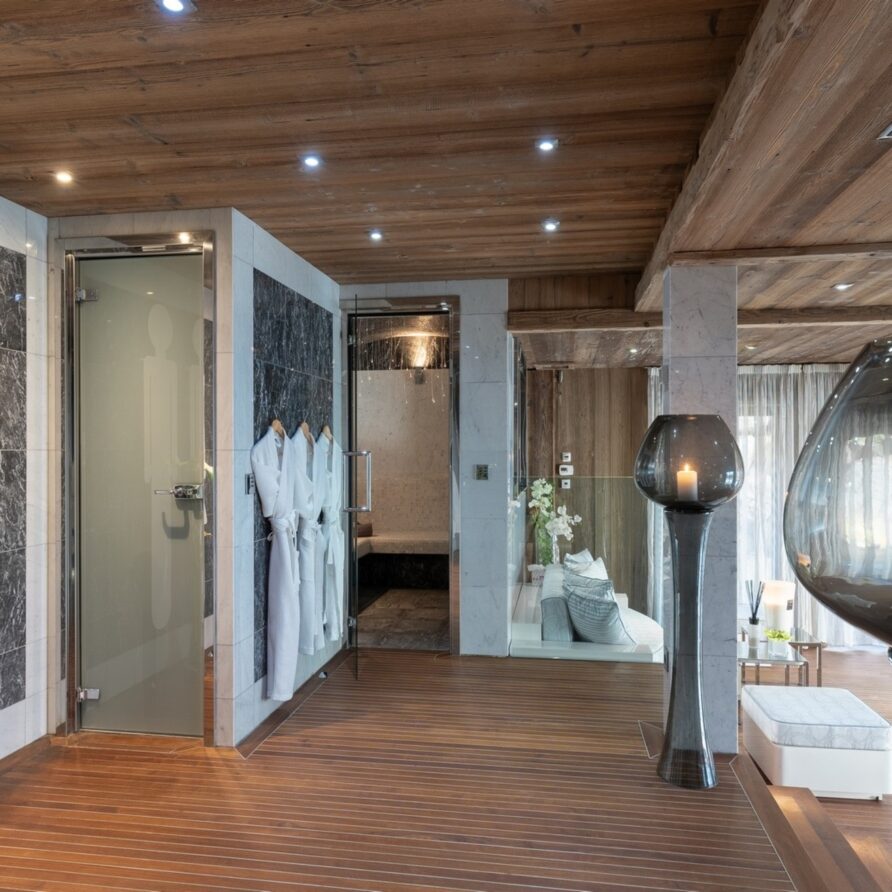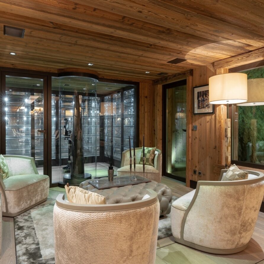 In the Chalet’s own wine cellar, the chalet team will be happy to advise you on the right wine for dinner, and those who would like to enjoy a cigar afterwards can do so in the cigar room. A large cinema room offers relaxation and entertainment after an excellent dinner. In addition, there is a TV lounge area. There is also a large terrace with comfortable outdoor furniture to relax on.
