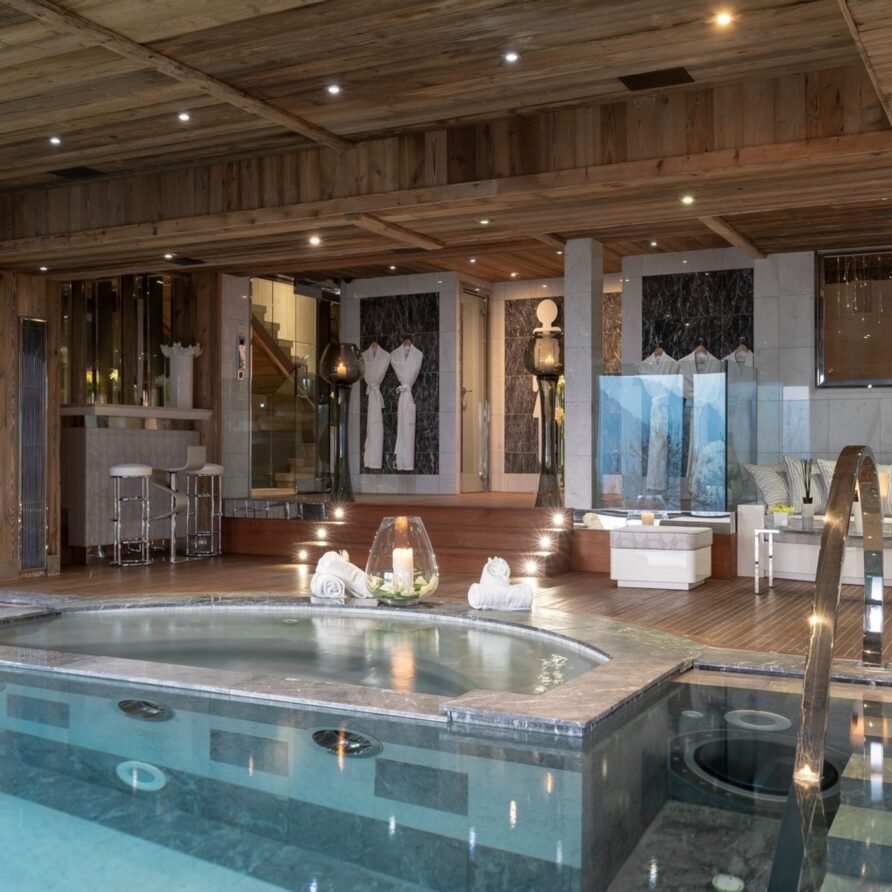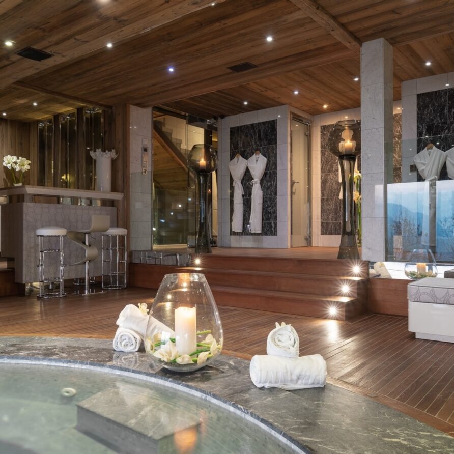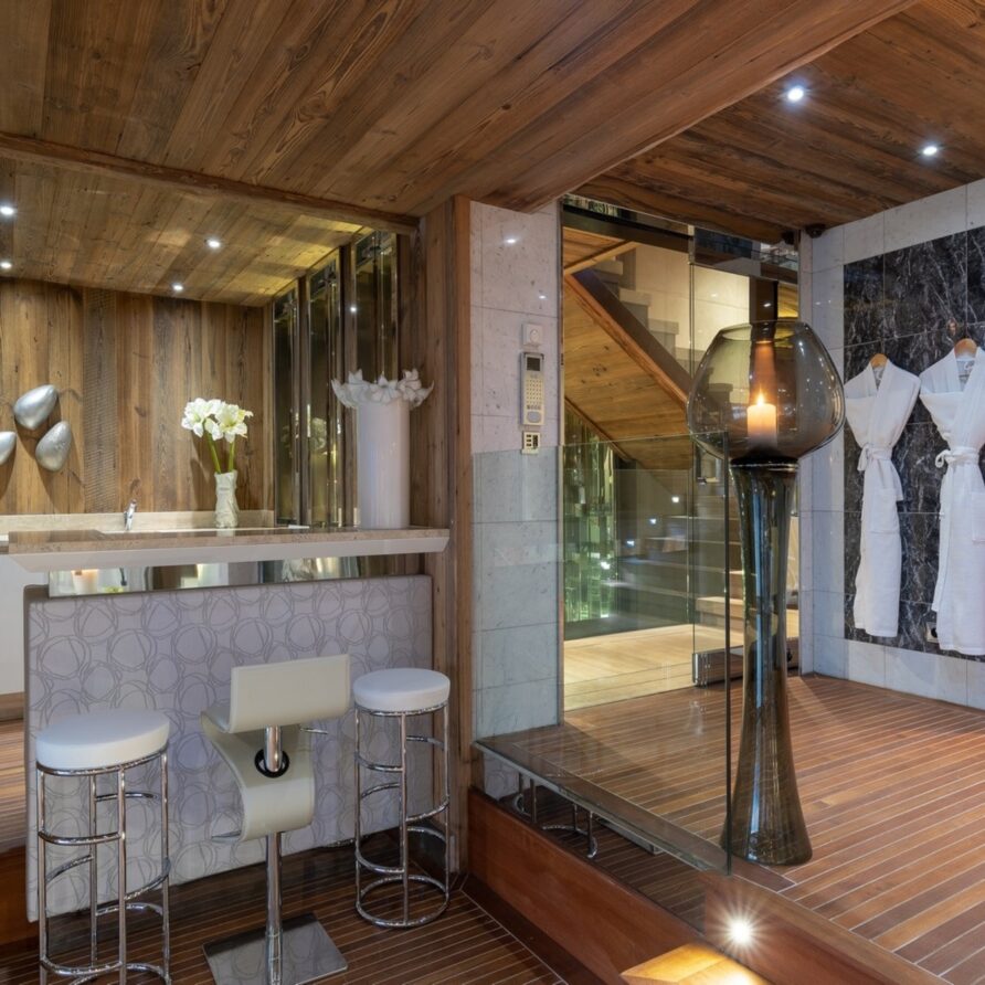 The wellness area comes with infinity pool, Jacuzzi, sauna and steam bath. A private gym and office are also part of the facilities. On top there is even a bar area, massage room and hair salon. The luxury chalet has everything the discerning guest can possibly wish for. Wonderful ambience, luxurious furnishings and a professional team make holidays an unforgettable experience.