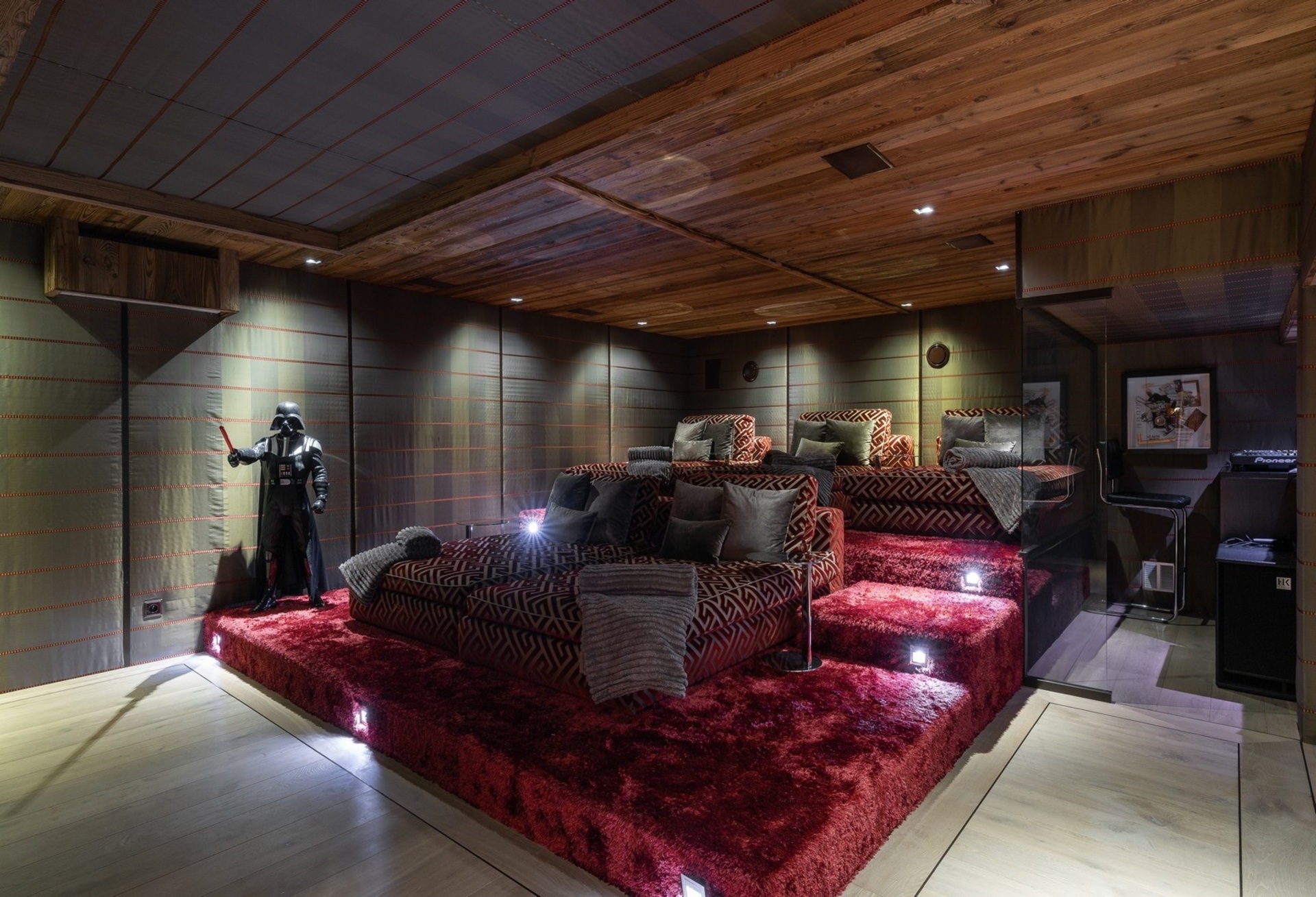 In the Chalet’s own wine cellar, the chalet team will be happy to advise you on the right wine for dinner, and those who would like to enjoy a cigar afterwards can do so in the cigar room. A large cinema room offers relaxation and entertainment after an excellent dinner. In addition, there is a TV lounge area. There is also a large terrace with comfortable outdoor furniture to relax on.