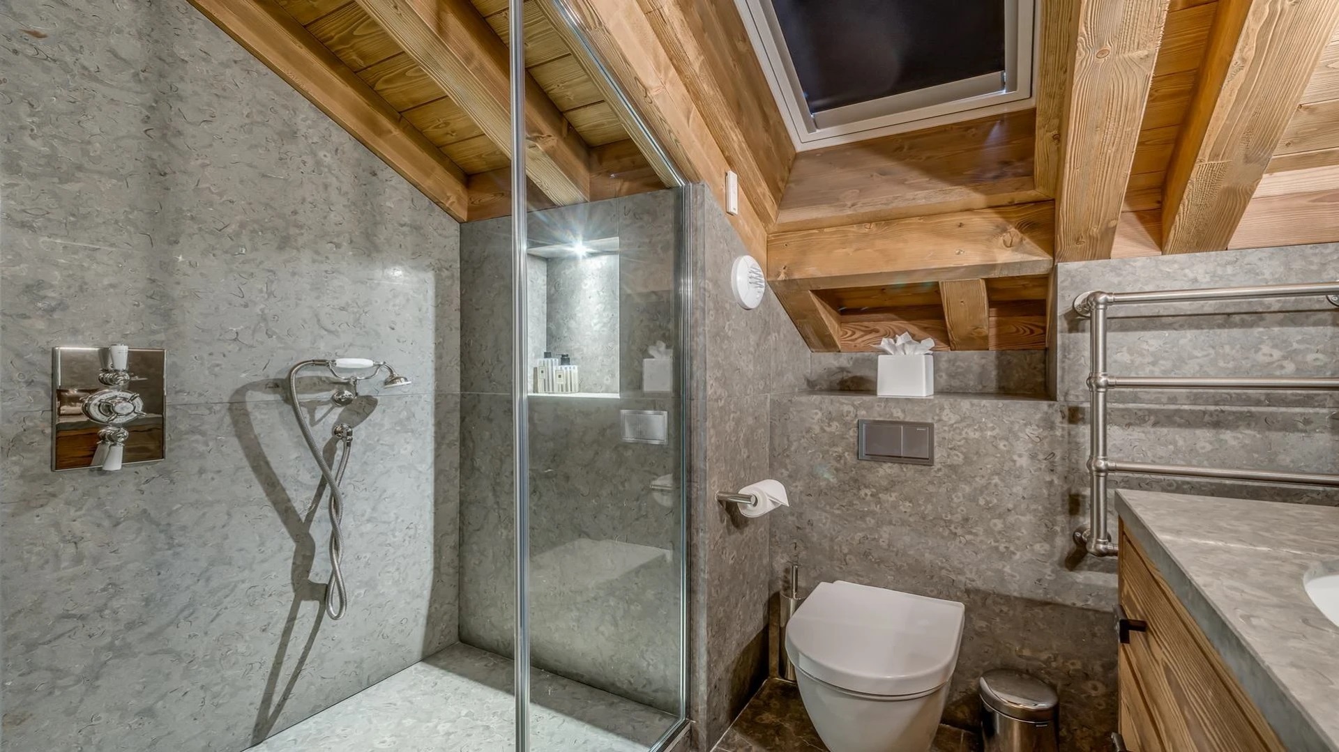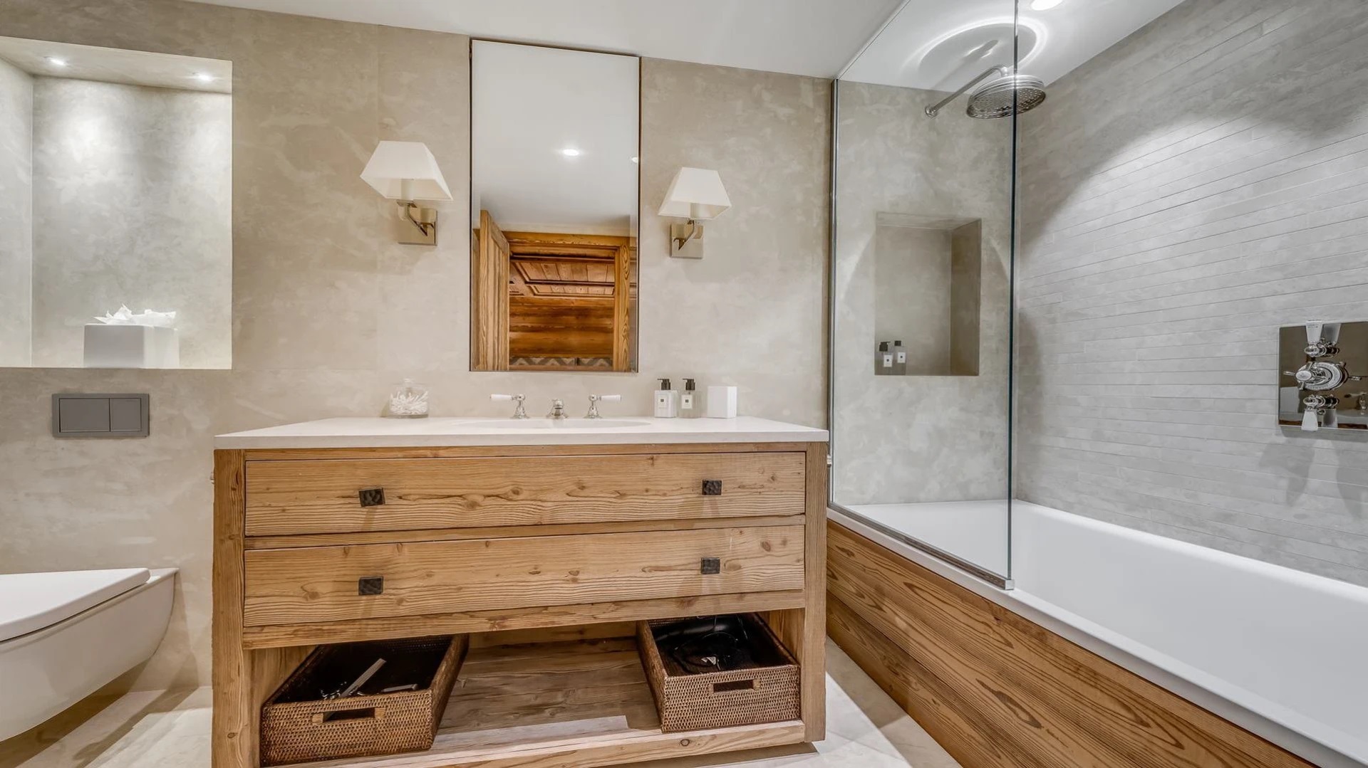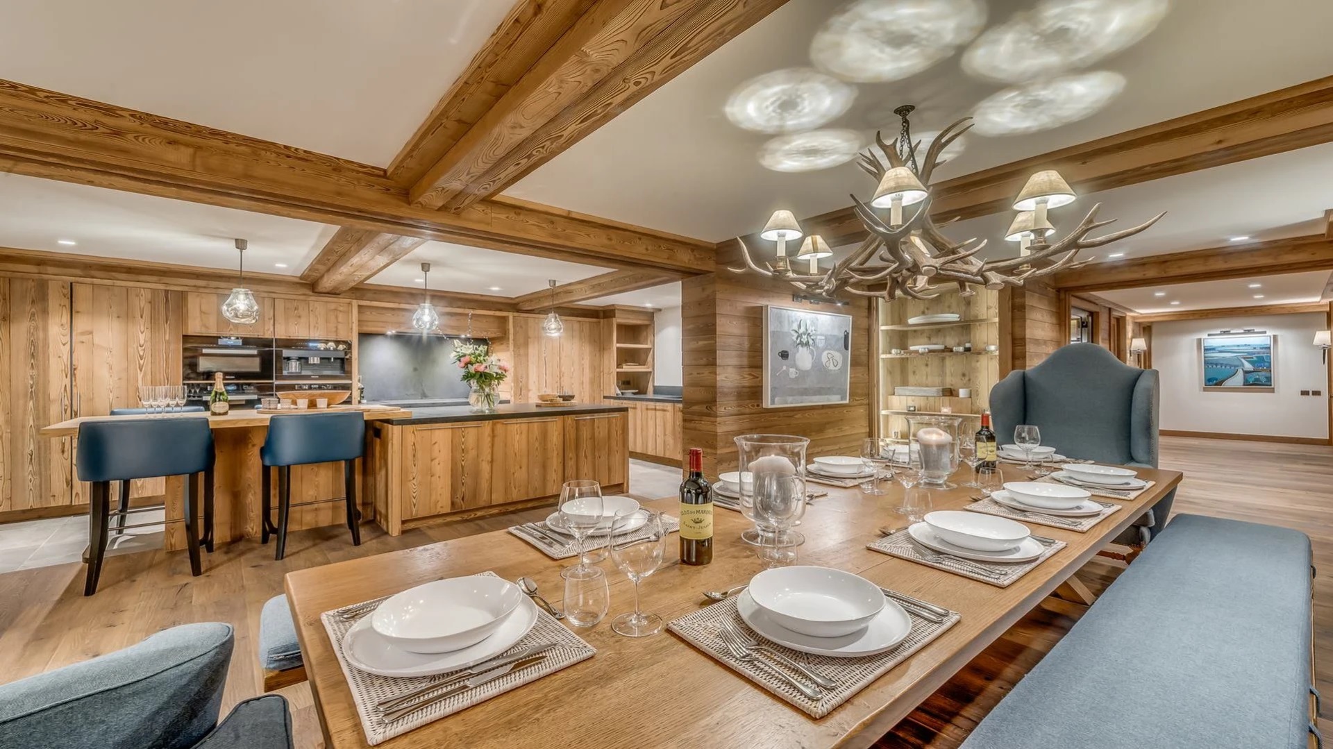 The chalet is a stunning example of elegance and modern luxury, the perfect base for six adults and four children. The exterior has been meticulously refurbished using aged wood and local stone, creating a visually appealing blend of rustic charm and contemporary design. Step inside, and you’ll find yourself immersed in a spacious 290sqm interior that seamlessly combines traditional style with cutting-edge technology.