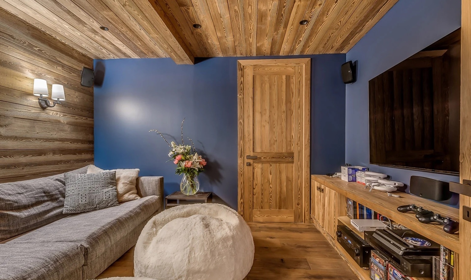 A large dining table brings the family together to enjoy a delicious home-cooked dinner with wine – a perfect setting for unforgettable moments. The south-facing balcony with unobstructed mountain view is the perfect place to soak up the sun and unwind with an aperitif. After a day on the slopes, guest can unwind in a dedicated movie playroom. It’s a perfect place to enjoy your favorite films and relax.