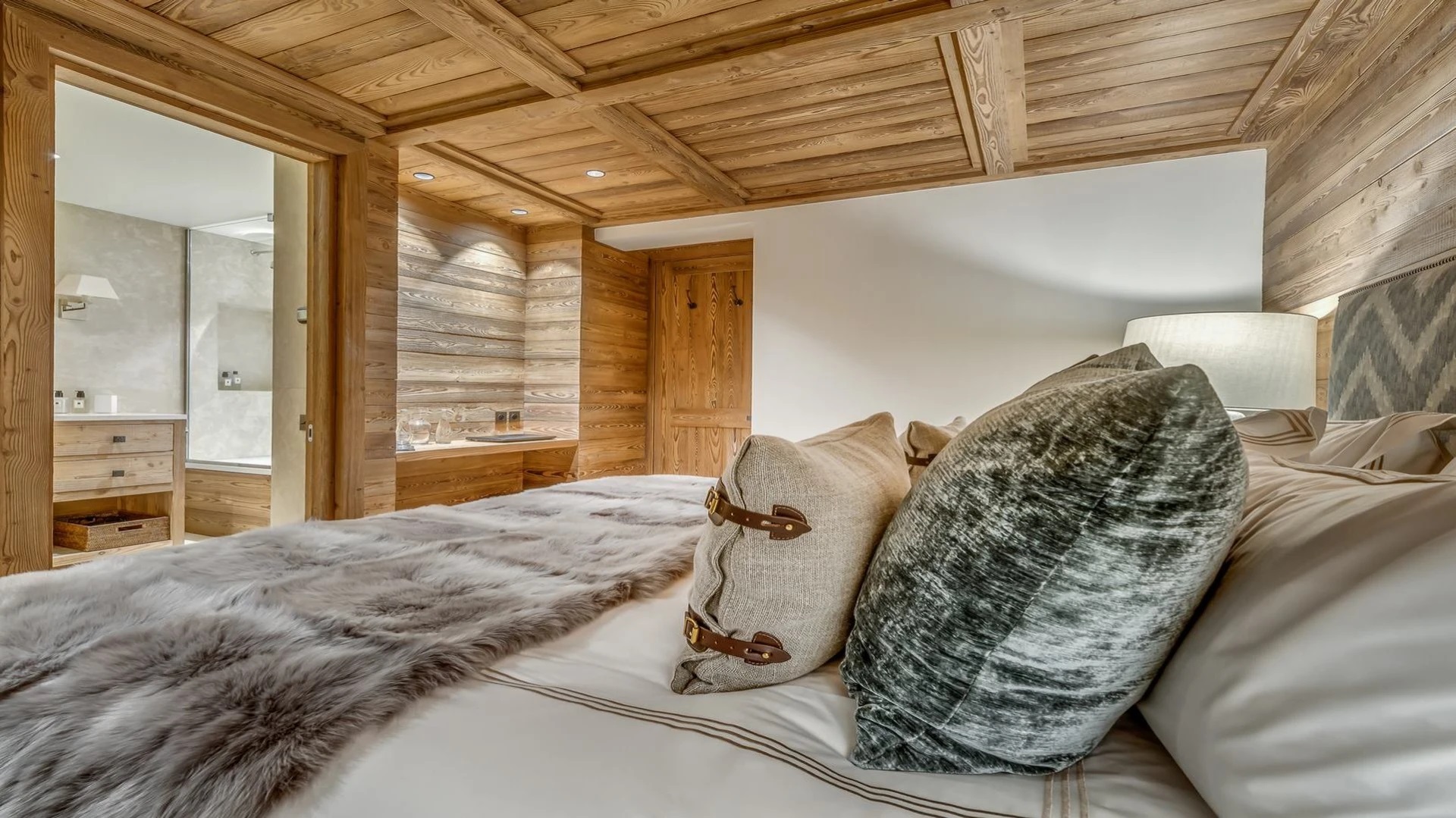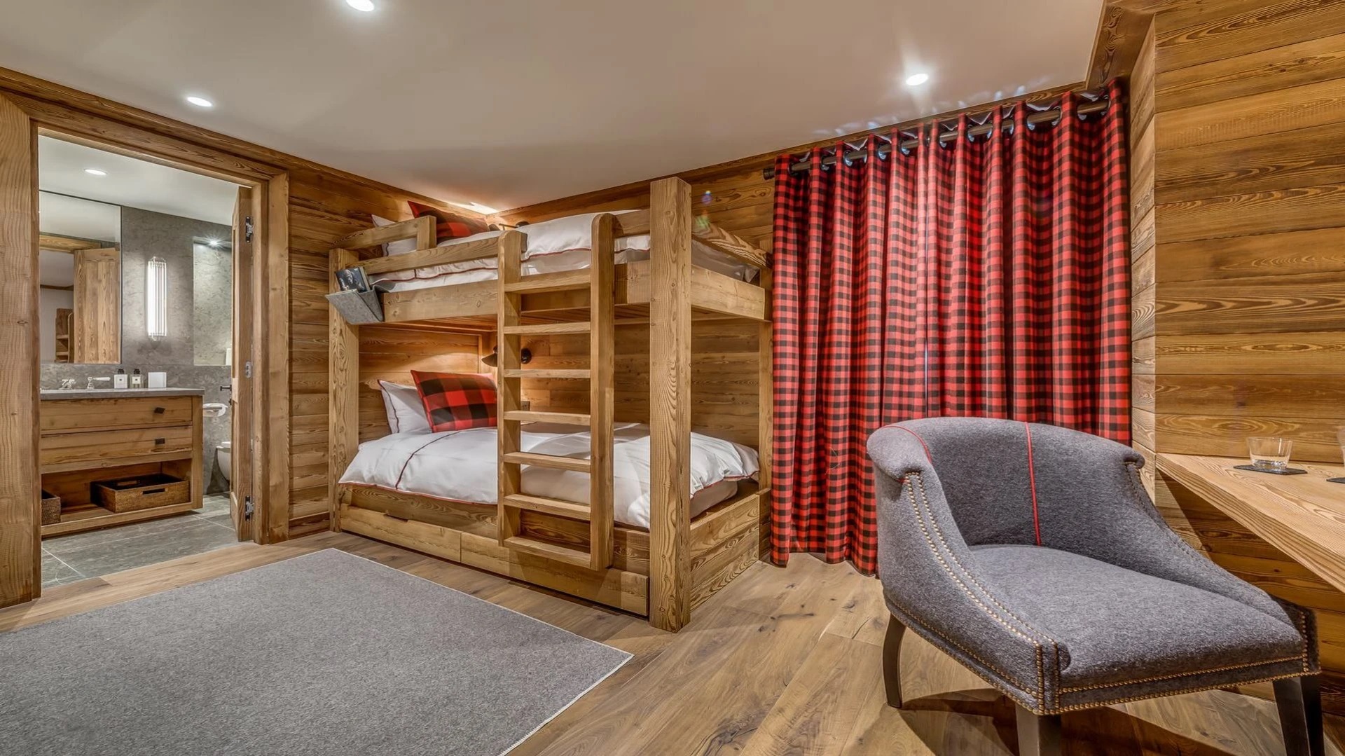 The capacity to accommodate 6 adults and 4 children in 3 en-suite bedrooms, and bunk room ensures a comfortable stay for larger groups or families. The master bedroom is a true sanctuary, featuring an en-suite bathroom and a luxurious shower. Two additional en-suite bedrooms provide a private retreat for guests, each thoughtfully designed for comfort and style. The bunk room adds a playful touch, making the chalet an ideal choice for families with children.