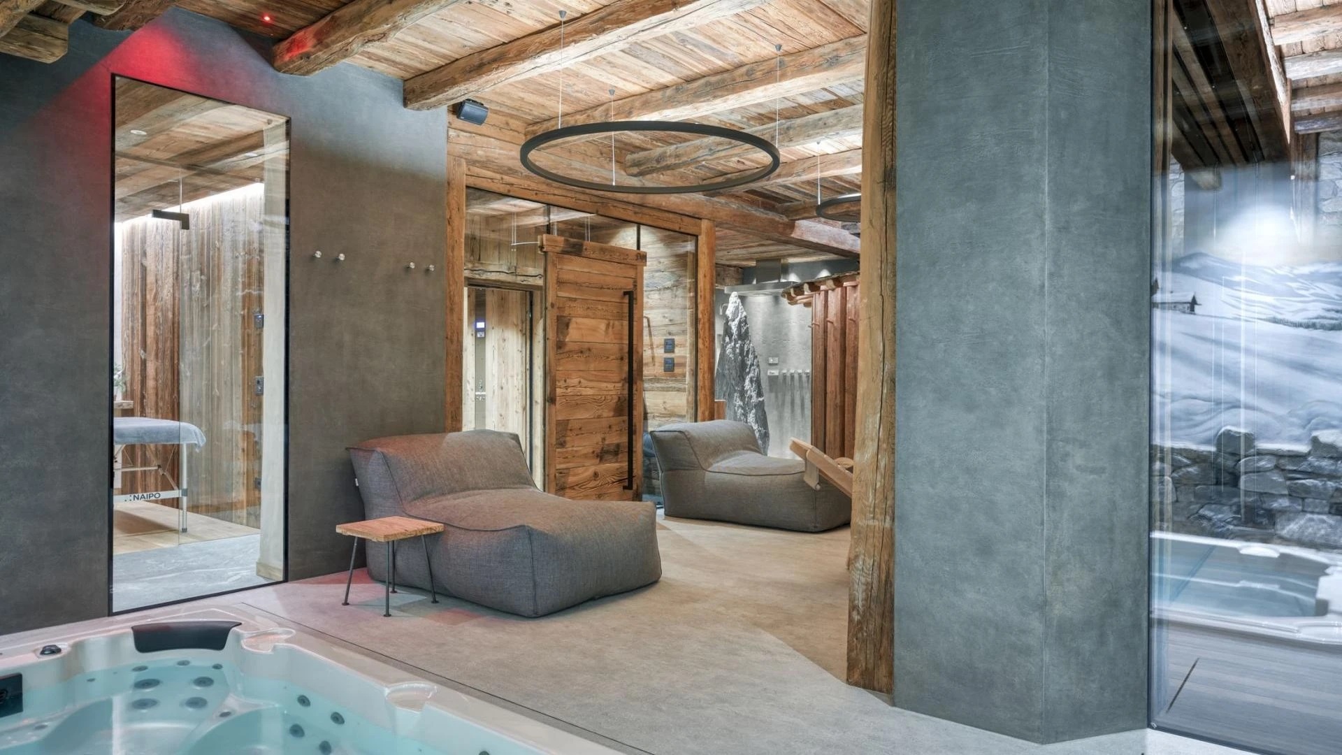 After a day on the slopes, head to the basement, where a luxurious spa awaits. The wellness area offers a superb assortment of facilities designed to rejuvenate and relax you. Dive into the swim-spa, equipped with soothing massage jets and a counter current system, allowing you to adjust the experience to your liking. Indulge in the warmth of the sauna or the steam of the Hammam, followed by a refreshing session in the emotional showers, which provide a multi-sensory experience. To complete your relaxation, a dedicated massage room is available, offering a tranquil space to unwind and soothe tired muscles after your day in the mountains.