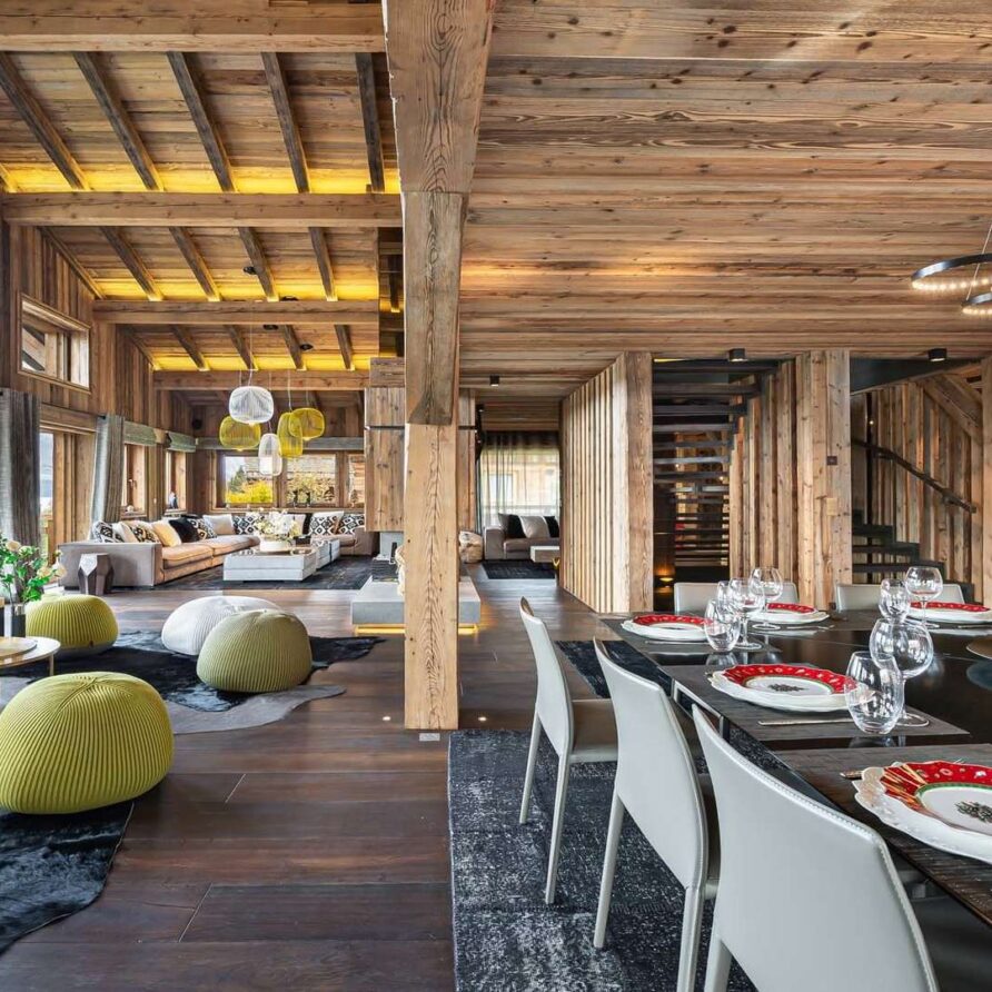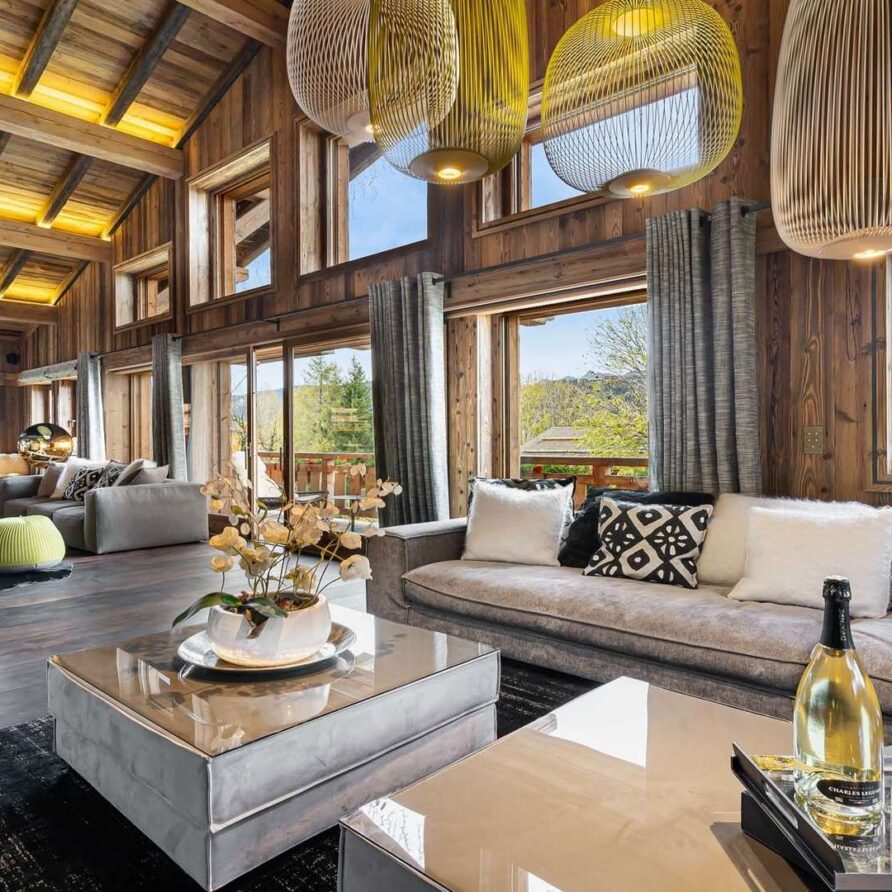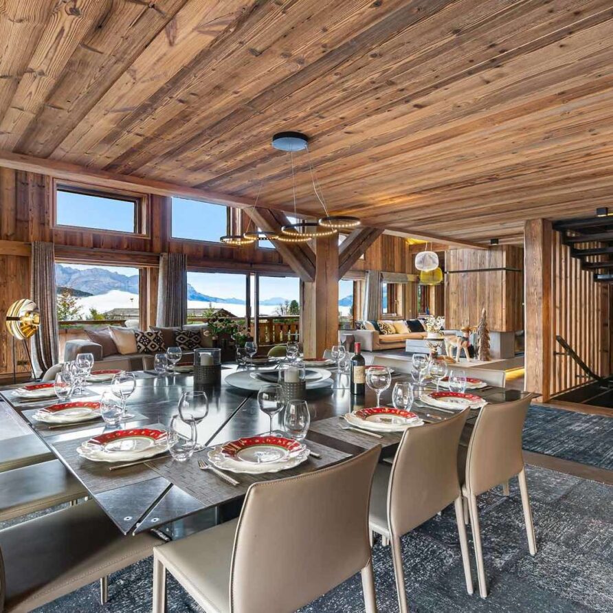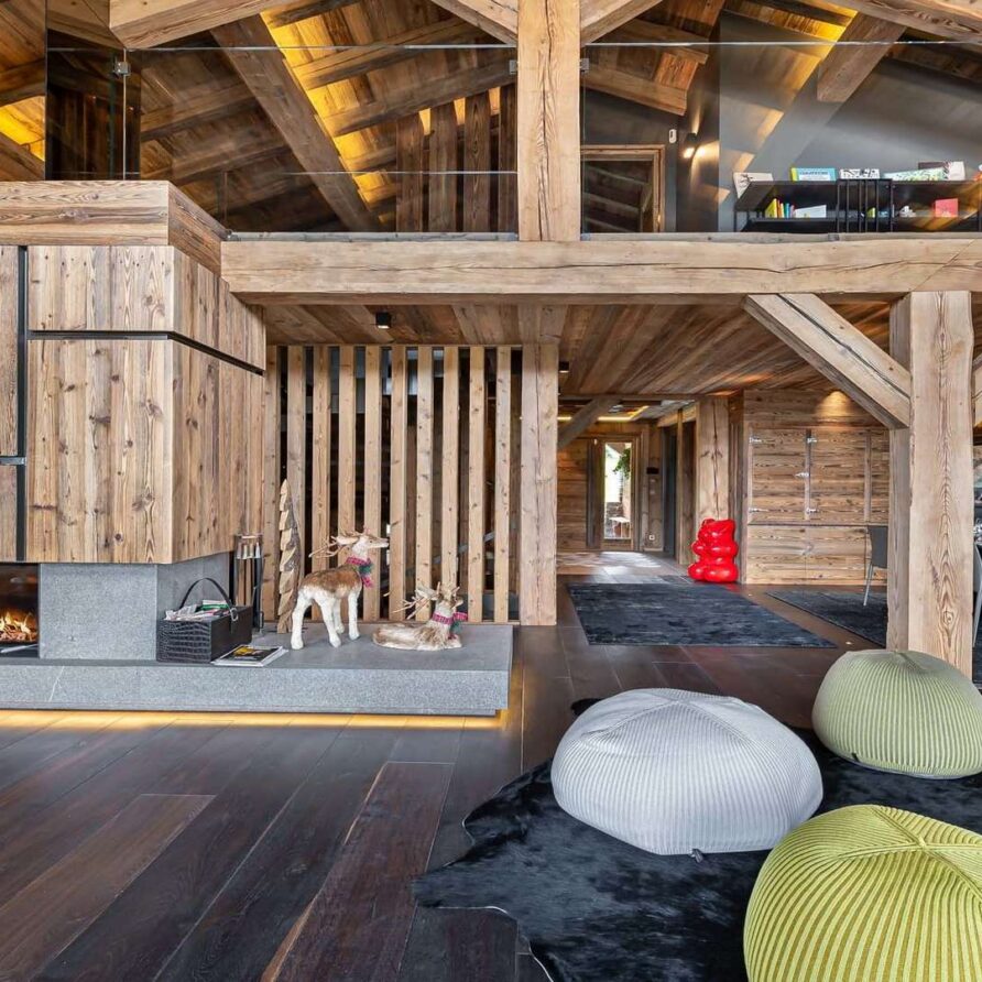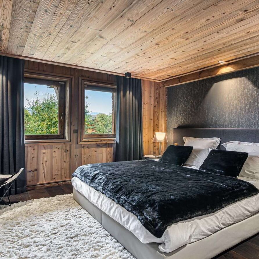 When you enter the chalet, you will notice the large volumes and the imposing ceiling height of the living room thanks to its mezzanine. The chalet has been designed to offer maximum comfort and conviviality for its guests, who can stay for up to 12 people without fearing a lack of space, as is the case around the magnificent central fireplace. The chalet is composed of large bay windows in the bedrooms as well as in the rest of the rooms.