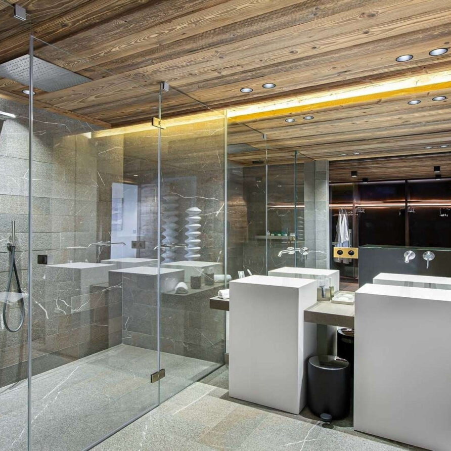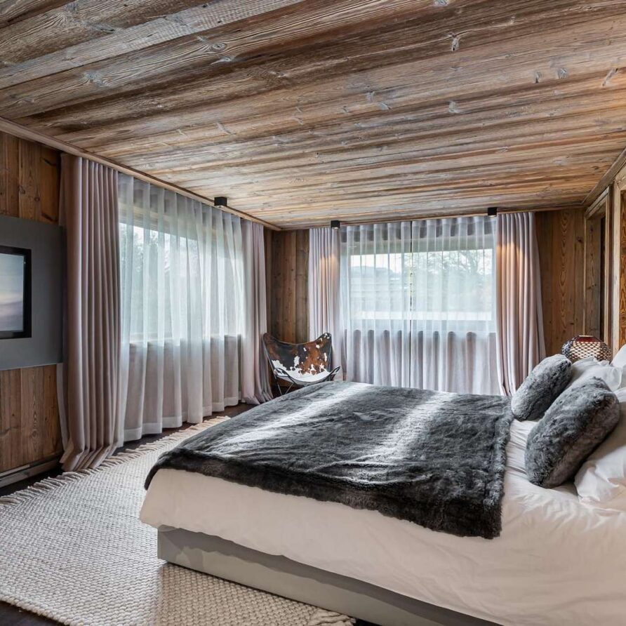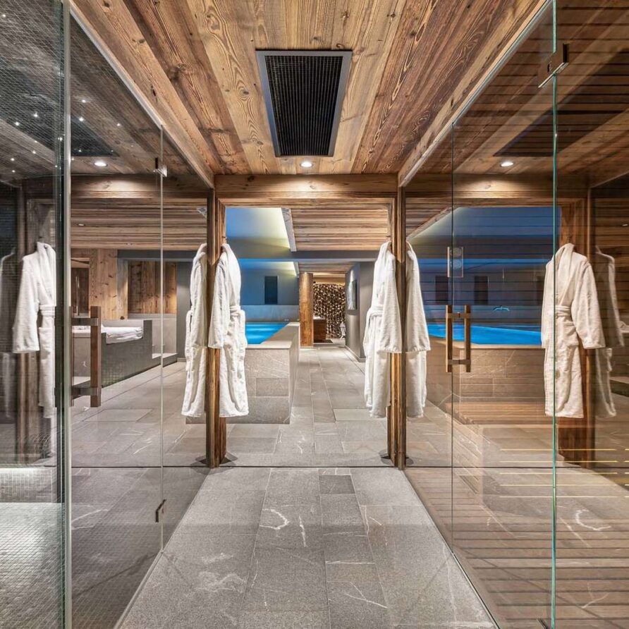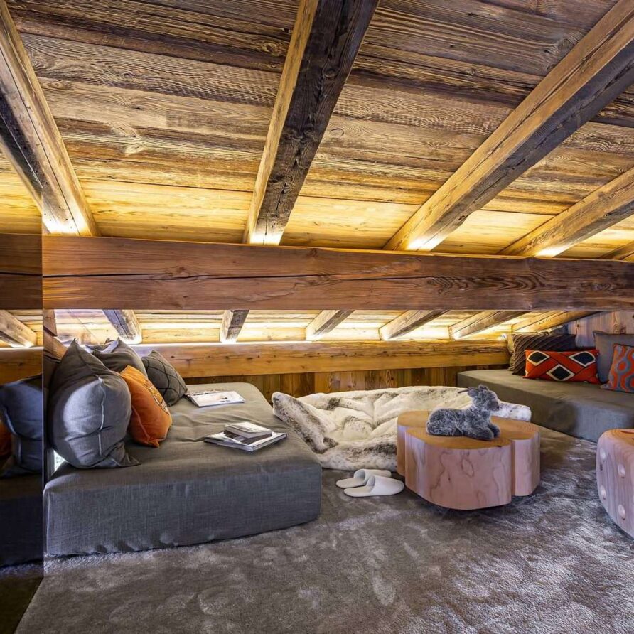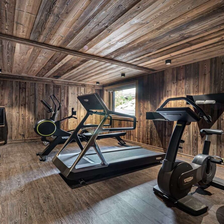 The carpets and furs provide warmth while offering a very intimate atmosphere. The chalet has five bedrooms, 4 double bedrooms and a children’s bedroom that sleeps 4. Each room is equipped with its own modern bathroom that has the same level of amenities as the rest of the holiday chalet. The chalet also includes other areas conducive to relaxation and well-being, such as the fully-equipped gym and its private cinema with large, cozy sofas.