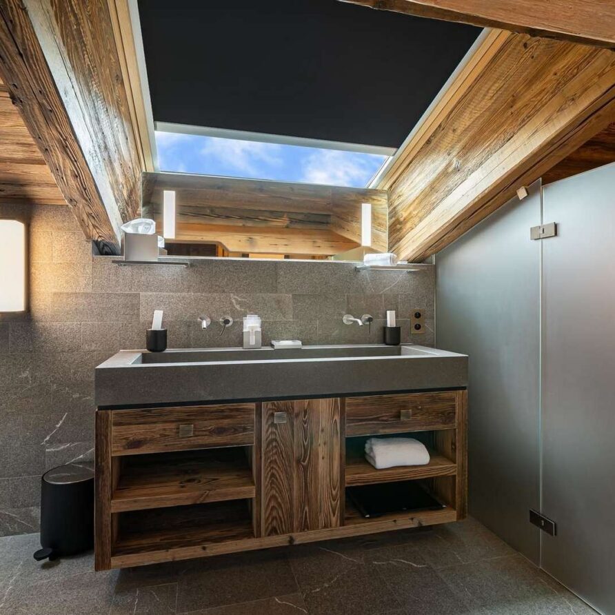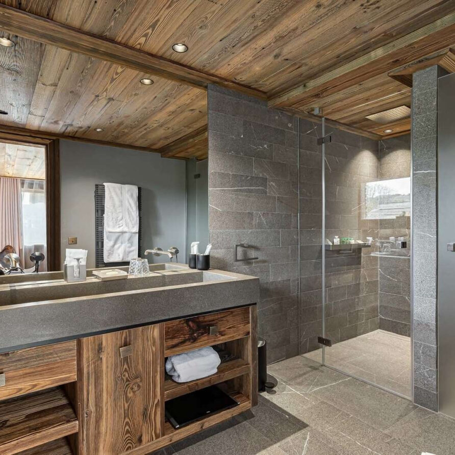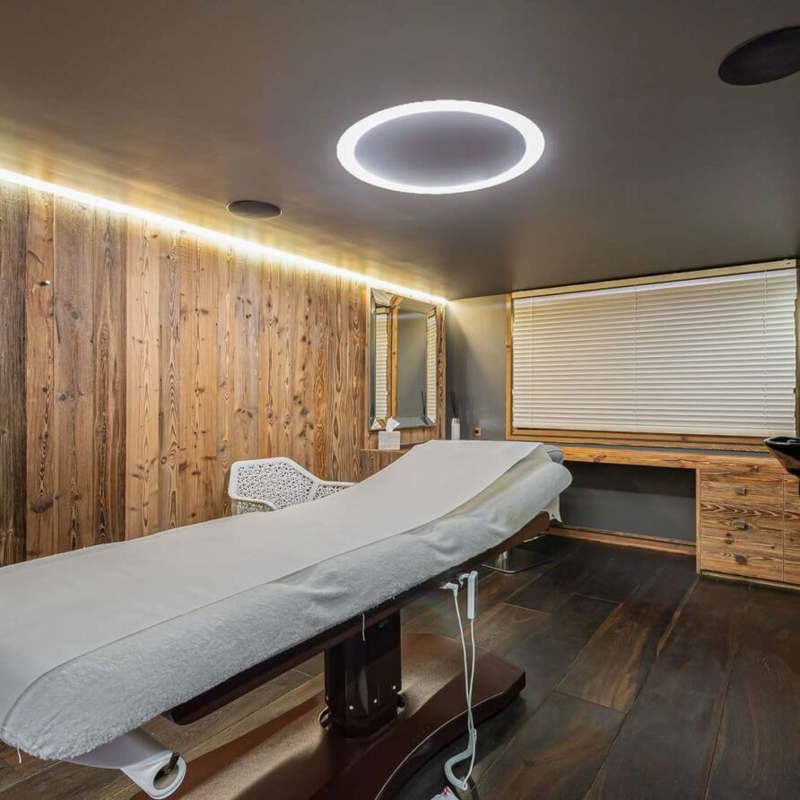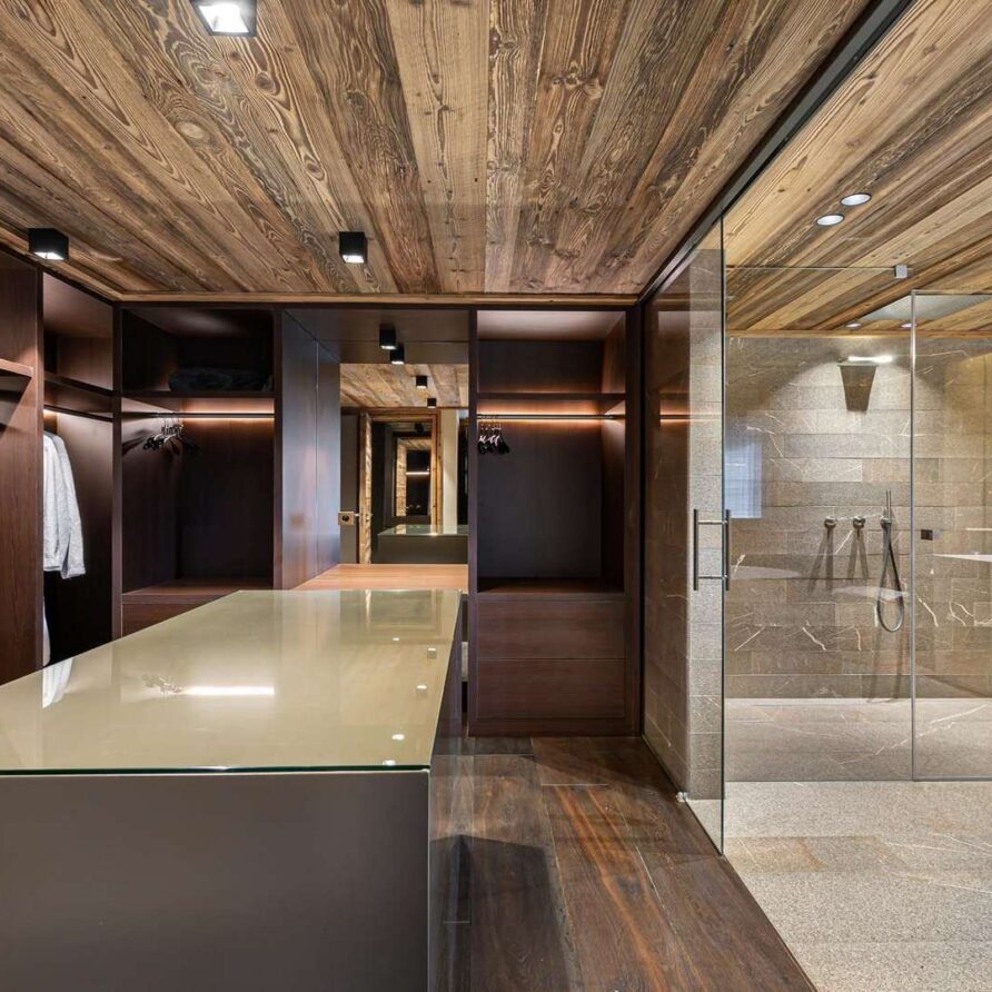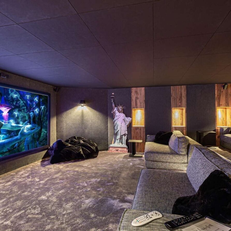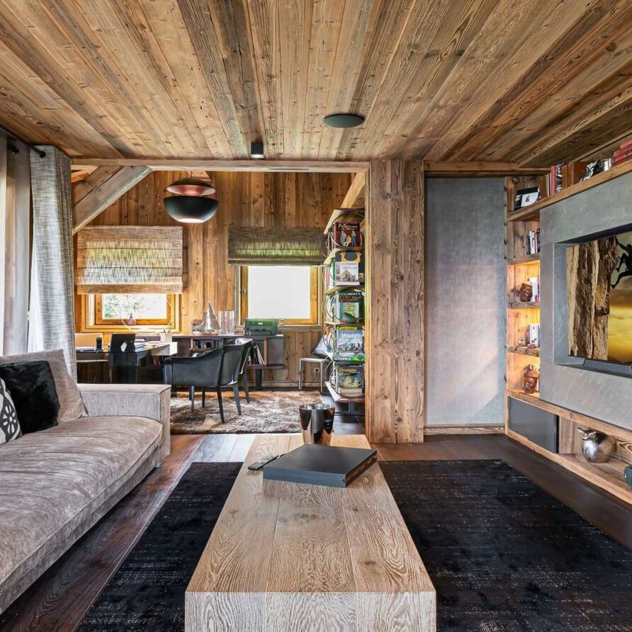 The carpets and furs provide warmth while offering a very intimate atmosphere. The chalet has five bedrooms, 4 double bedrooms and a children’s bedroom that sleeps 4. Each room is equipped with its own modern bathroom that has the same level of amenities as the rest of the holiday chalet. The chalet also includes other areas conducive to relaxation and well-being, such as the fully-equipped gym and its private cinema with large, cozy sofas.