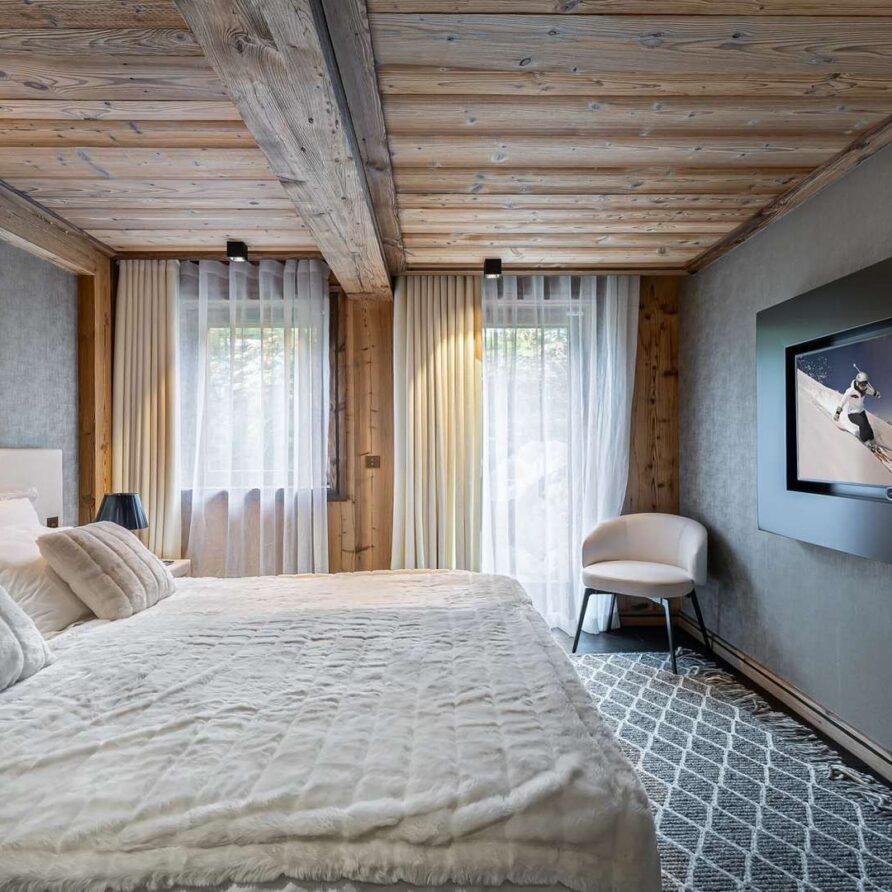 The luminosity is therefore very present and perfectly highlights the alliance between the contemporary decoration and the high-quality wood construction materials. The large terrace of the living room will allow you to sunbathe as if you were in your favorite altitude restaurant. The bedrooms are in the same architectural style as the rest of the chalet, with the presence of wood, contemporary touches and large bay windows to bring that much sought-after luminosity.