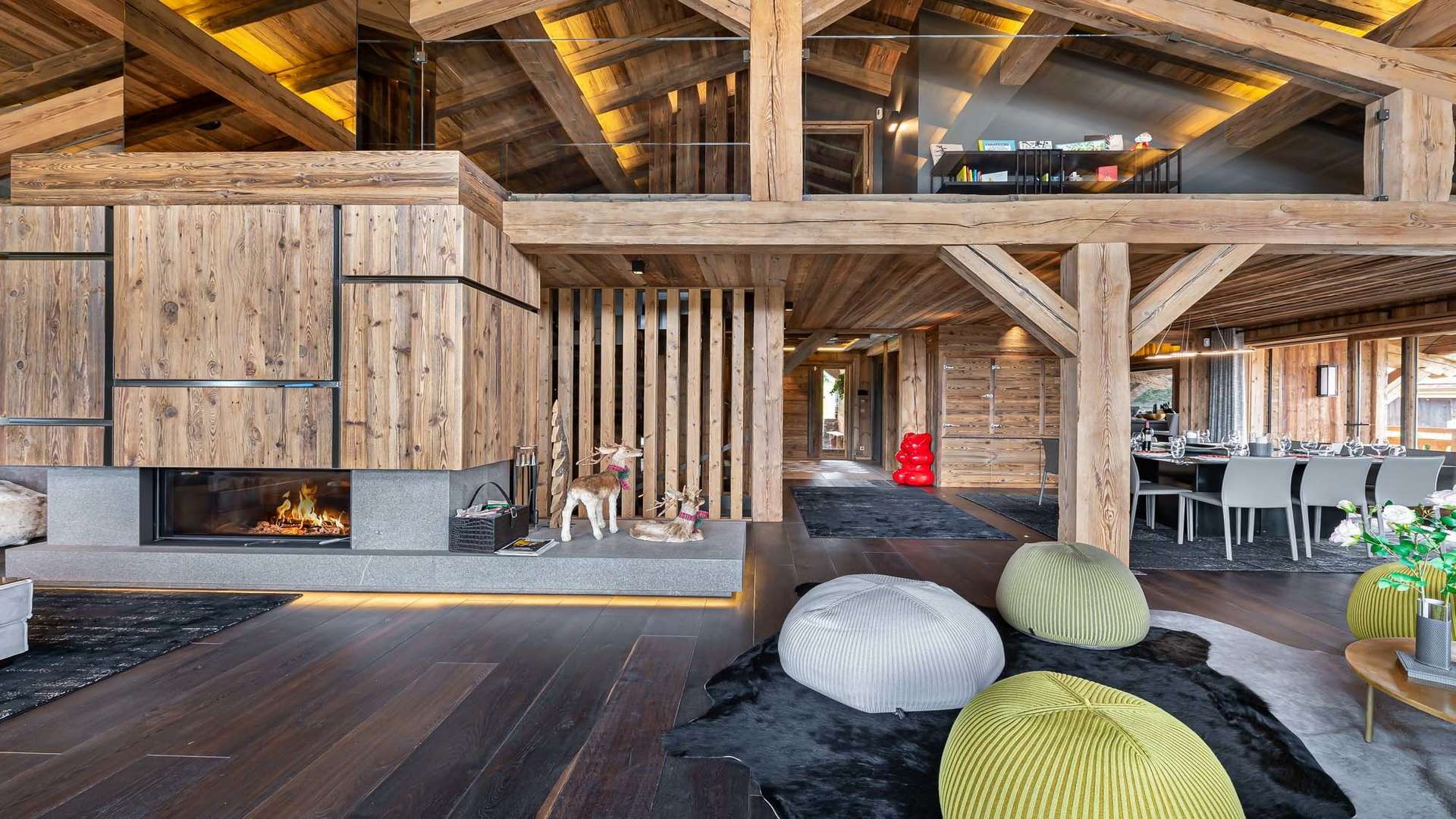When you enter the chalet, you will notice the large volumes and the imposing ceiling height of the living room thanks to its mezzanine. The chalet has been designed to offer maximum comfort and conviviality for its guests, who can stay for up to 12 people without fearing a lack of space, as is the case around the magnificent central fireplace. The chalet is composed of large bay windows in the bedrooms as well as in the rest of the rooms.