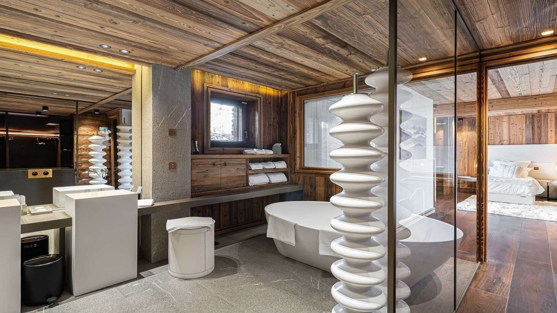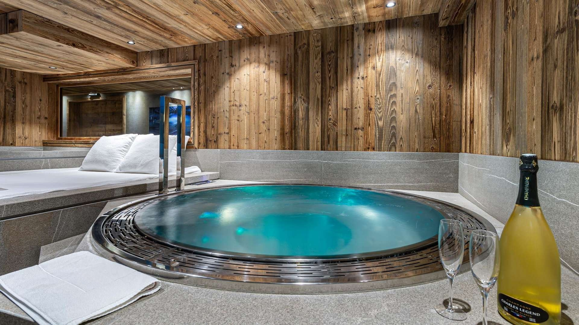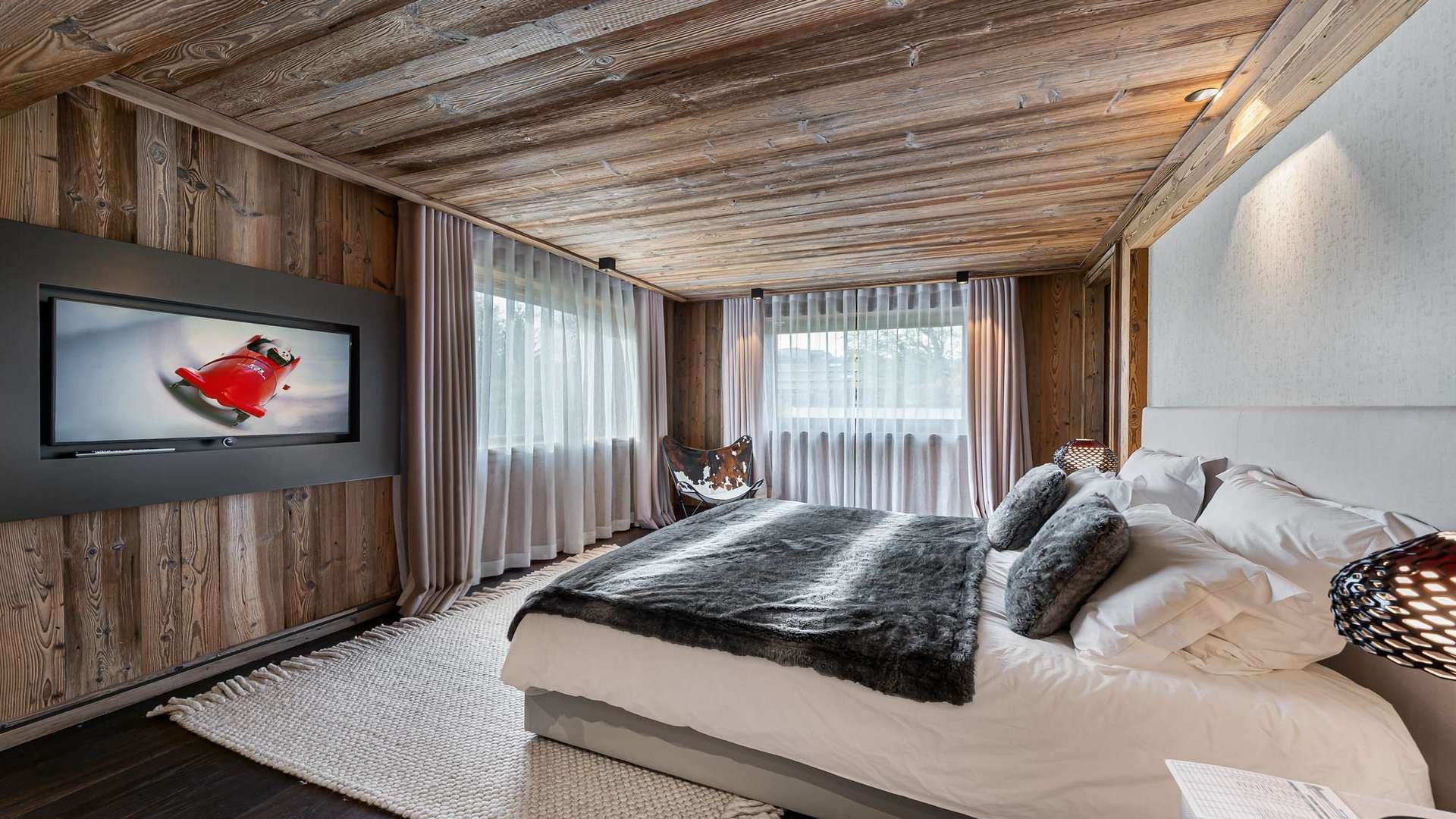 The carpets and furs provide warmth while offering a very intimate atmosphere. The chalet has five bedrooms, 4 double bedrooms and a children’s bedroom that sleeps 4. Each room is equipped with its own modern bathroom that has the same level of amenities as the rest of the holiday chalet. The chalet also includes other areas conducive to relaxation and well-being, such as the fully-equipped gym and its private cinema with large, cozy sofas.