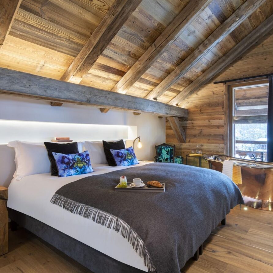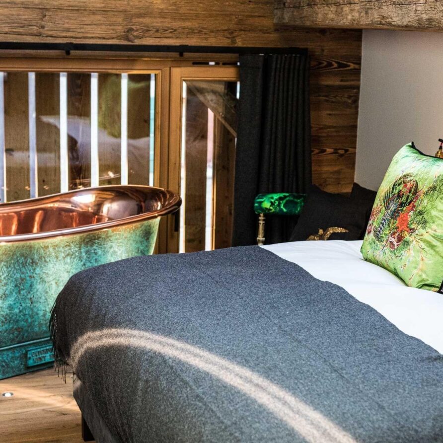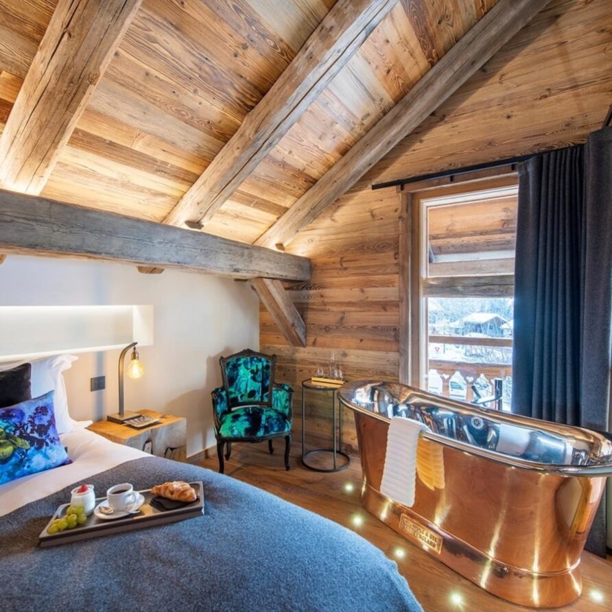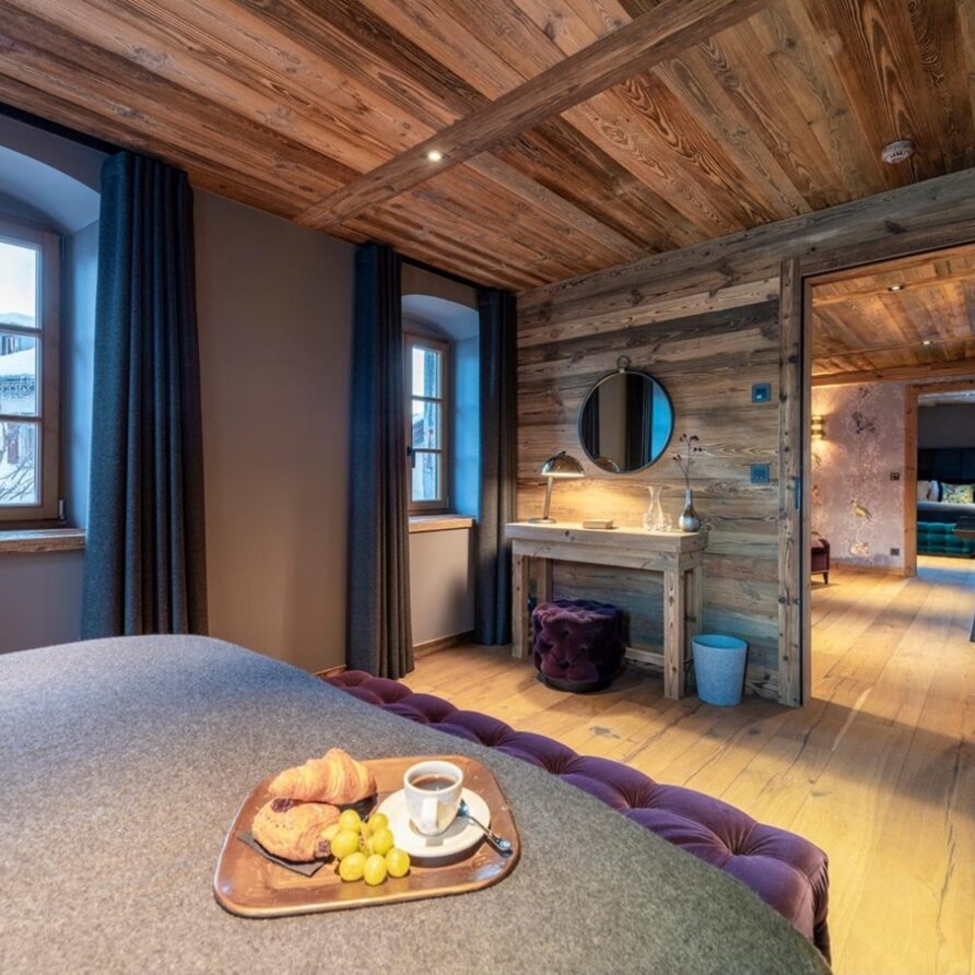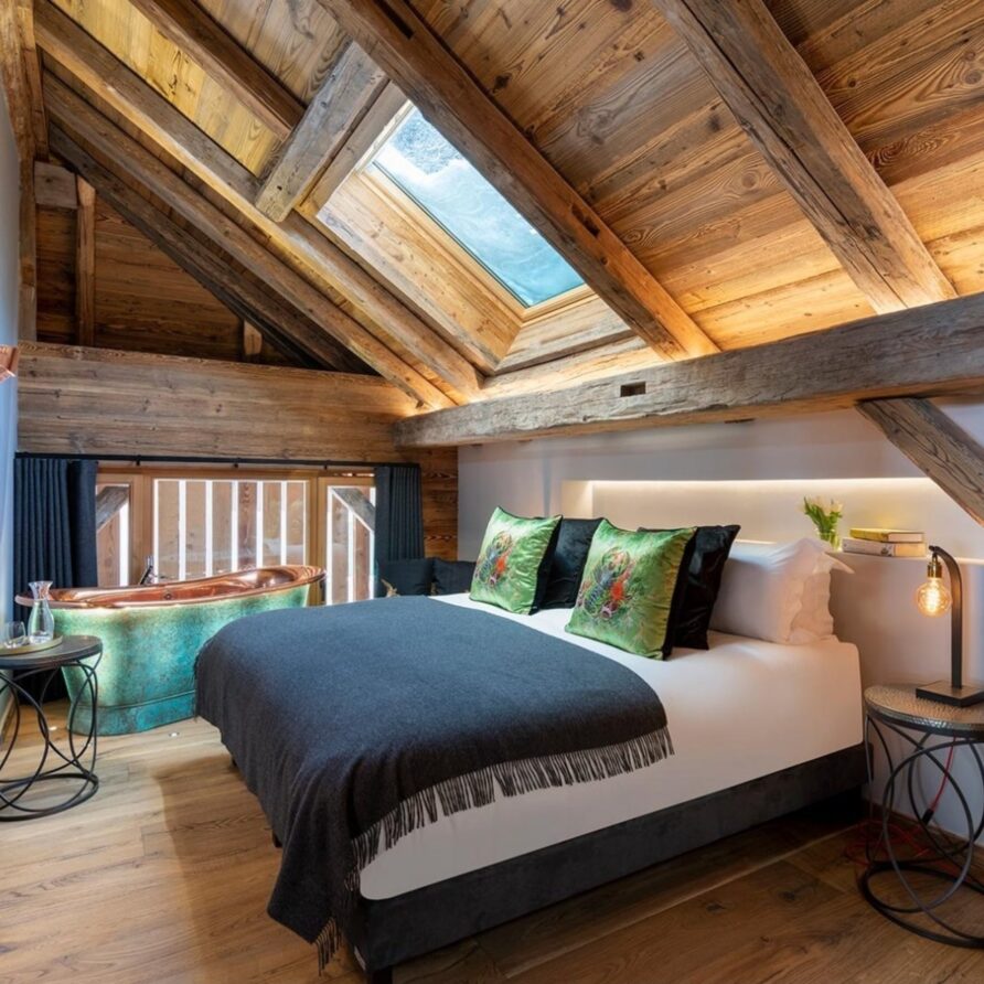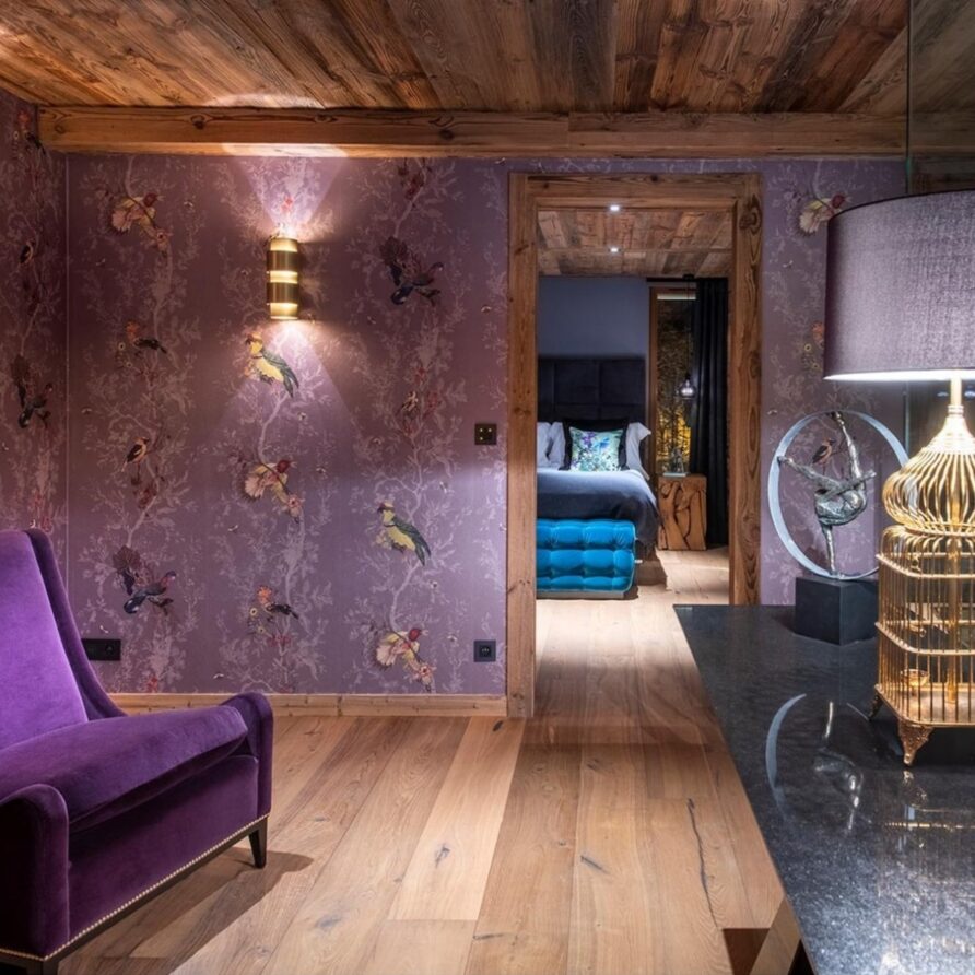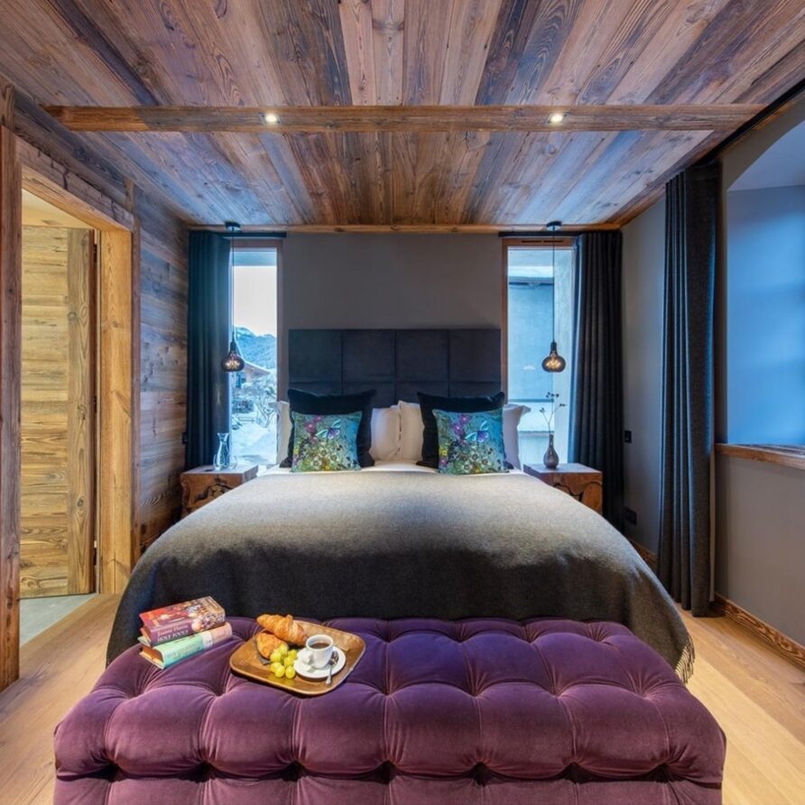 The chalet has a library area and sumptuous boudoir, for guests to unwind before retreating to the elegant bedrooms. The boudoir, one of the most unique and magical spaces, offers the perfect place to escape the rest of your group and enjoy a moment of inner solace.