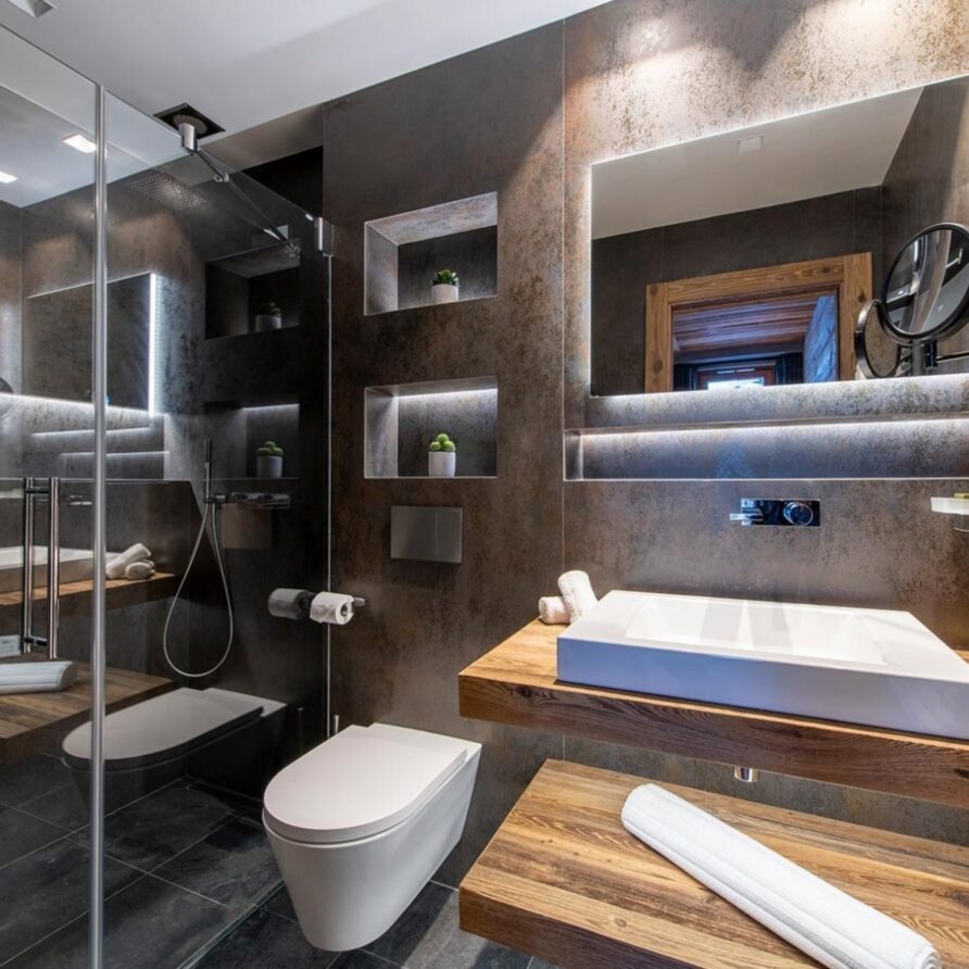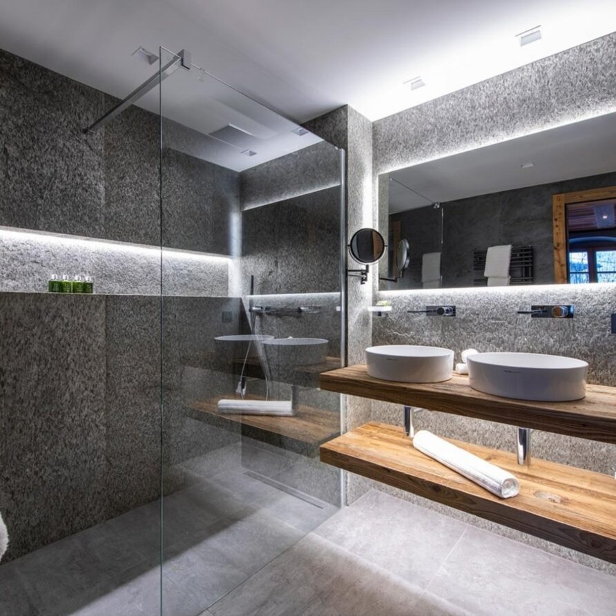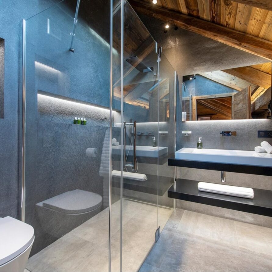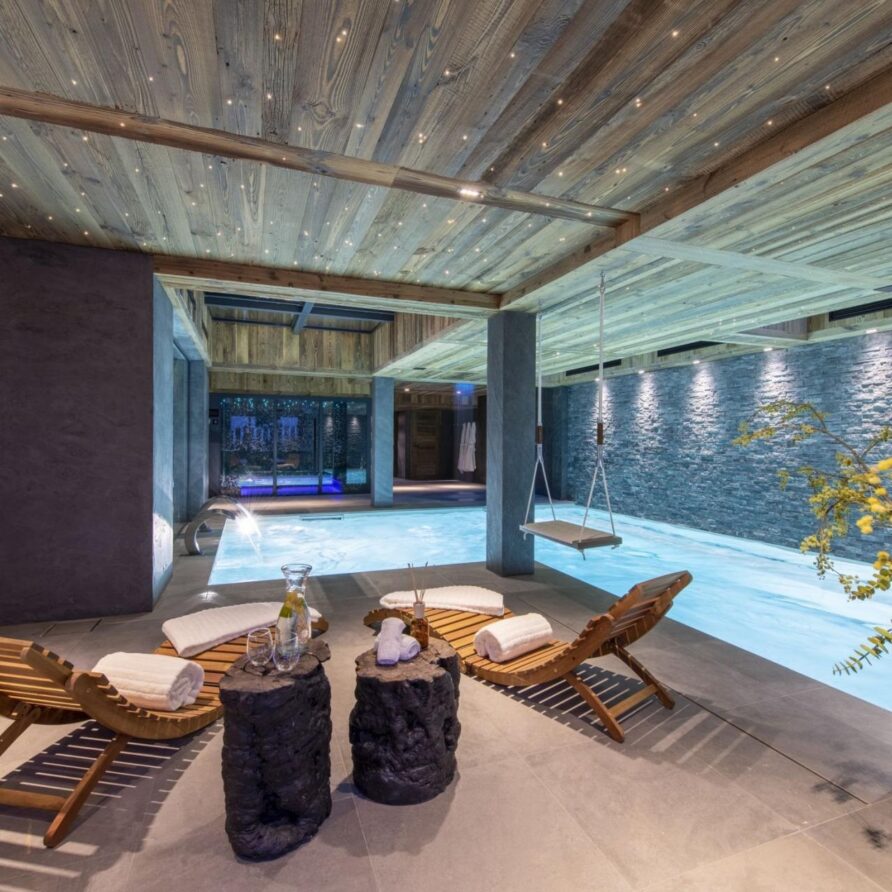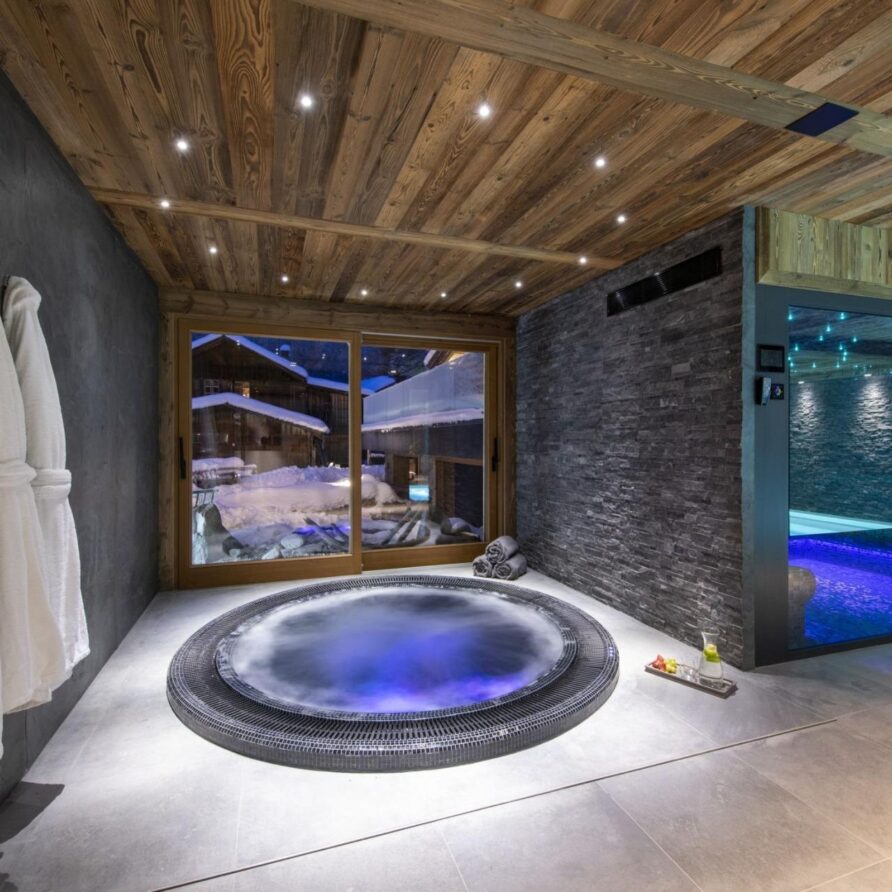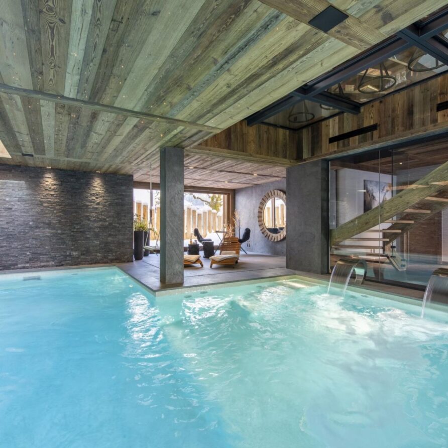 This chalet is truly amazing. Everything is designed to feel good as a family. 6 bedrooms with their en-suite and comfortable bathrooms; an exceptional living room with beautiful ceiling height and mountain views; pool, sauna… everything is great !