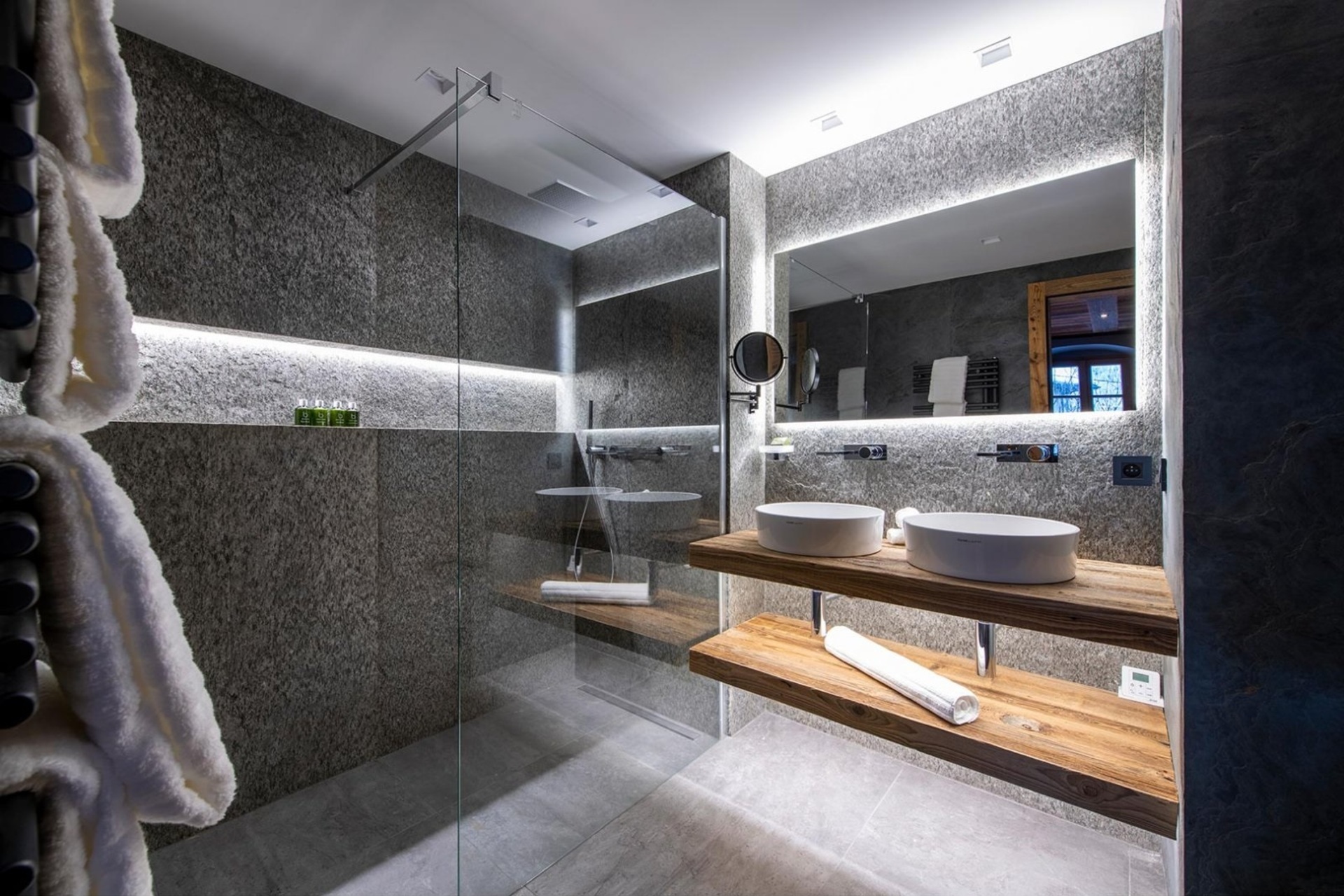 This chalet is truly amazing. Everything is designed to feel good as a family. 6 bedrooms with their en-suite and comfortable bathrooms; an exceptional living room with beautiful ceiling height and mountain views; pool, sauna… everything is great !