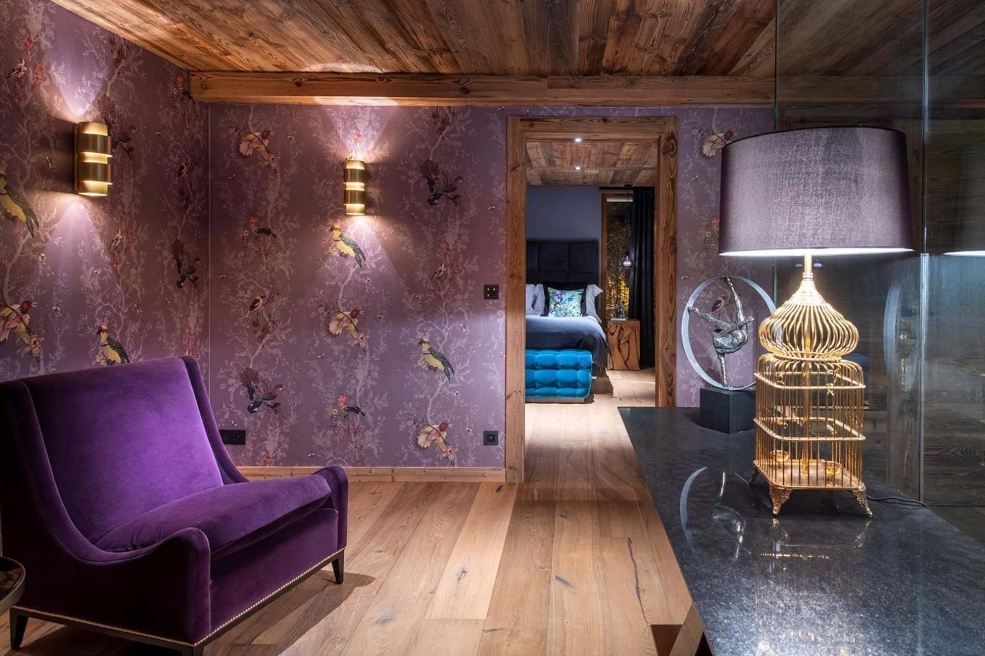 The chalet has a library area and sumptuous boudoir, for guests to unwind before retreating to the elegant bedrooms. The boudoir, one of the most unique and magical spaces, offers the perfect place to escape the rest of your group and enjoy a moment of inner solace.