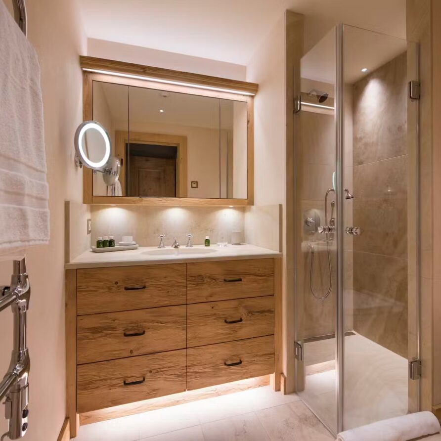 The chalet also has lots on offer for an evening of entertainment. The chalet cinema room provides comfortable chairs to sink into as you watch your favorite blockbuster film. If the movie choice of the night is not for you, you can always head next door to the vibrant TV lounge, where a bar and wine cellar will provide the drinks for the night.