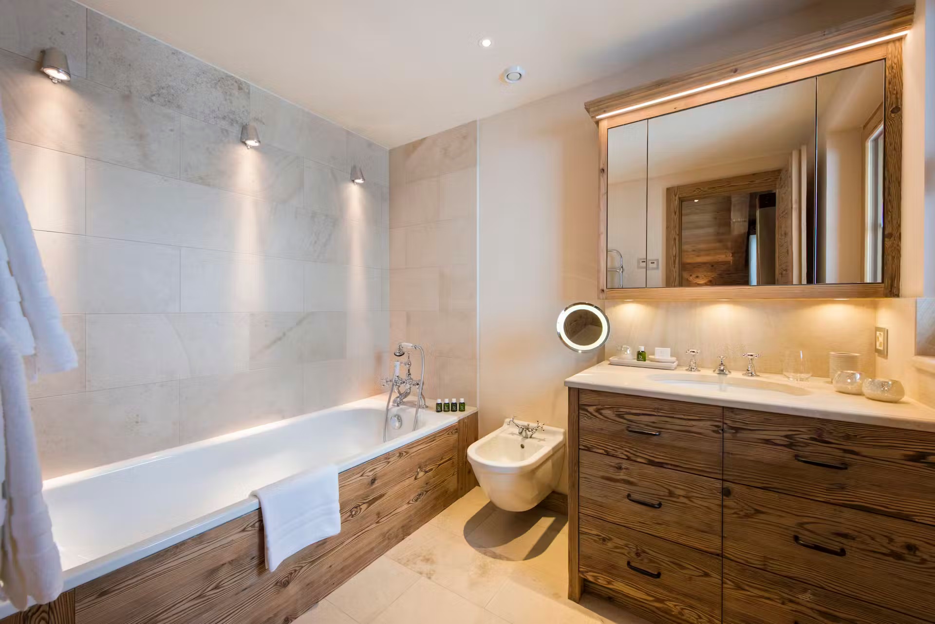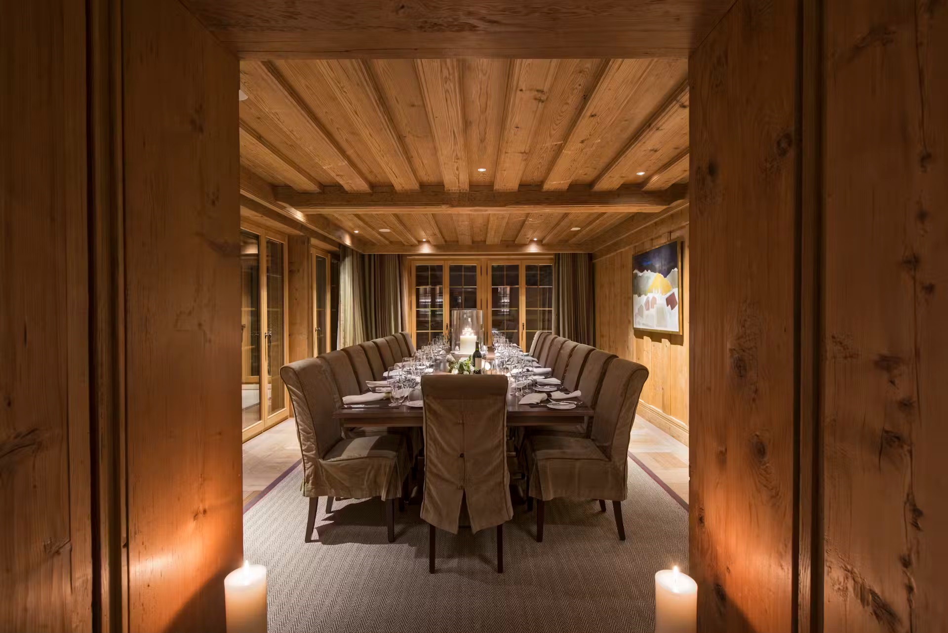 The spa facilities on offer at the chalet are some of the best. Head to the ground floor where you will find a 15m swimming in a cavernous room with plenty of extra space for relaxing beside it when not taking a dip. A hammam close by is also on hand for some stress-reducing ski recovery and cleansing treatments. Outside, a bubbling hot tub sunken into the ground not only provides a soothing spot for a relaxing dip, but also some of the most impressive scenery you can imagine.