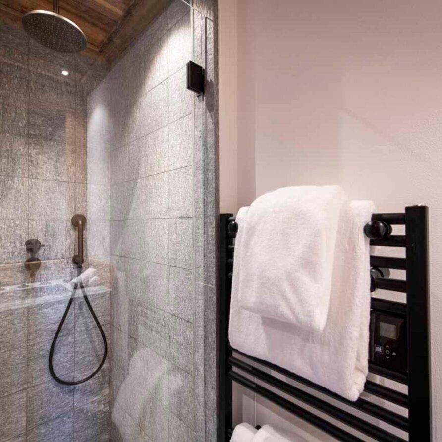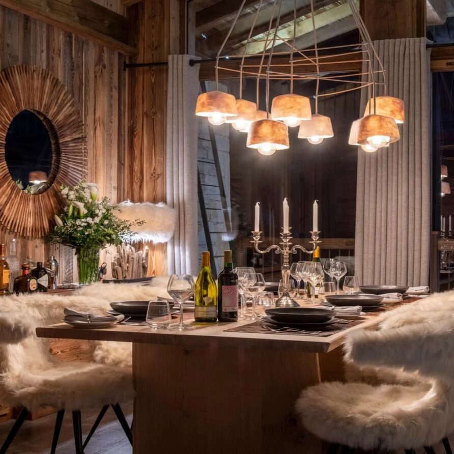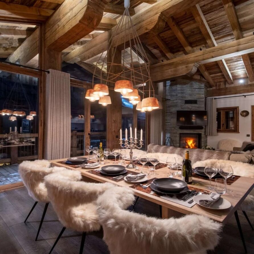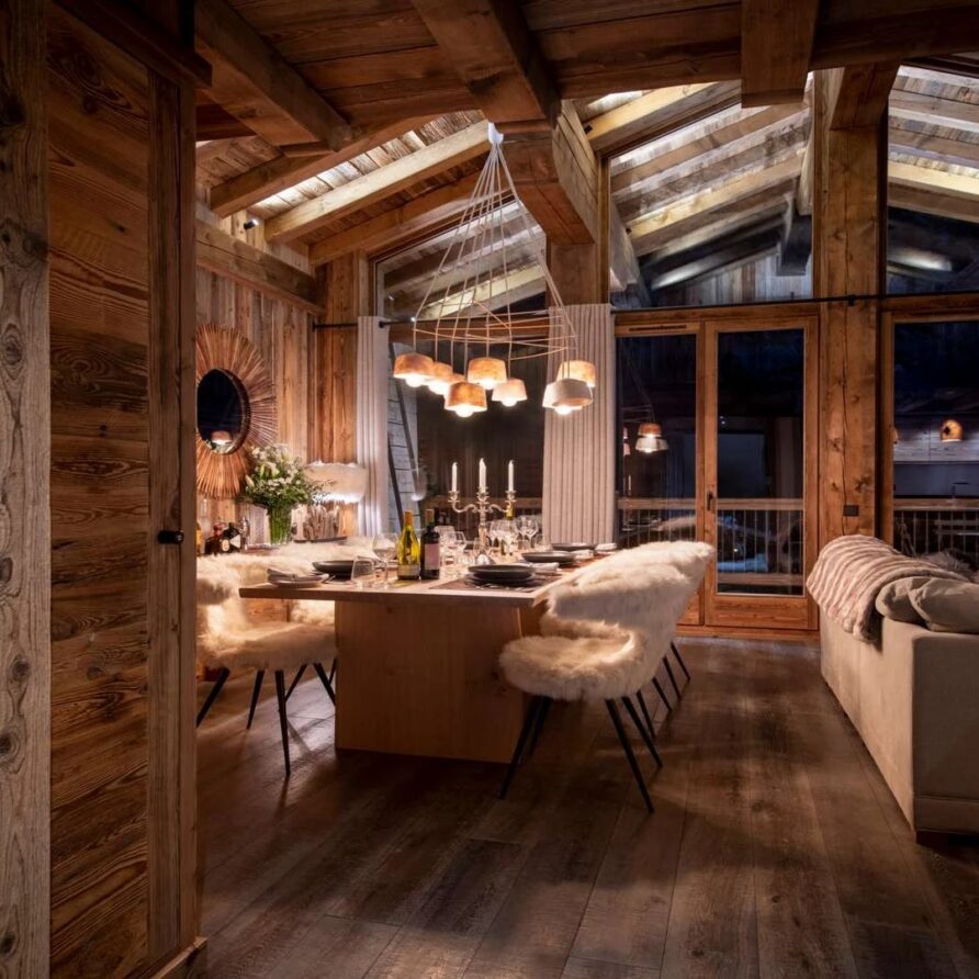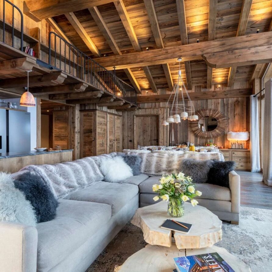 The chalet offer a private ski room equipped with boot warmers is located directly next to the main door. The living area is found on your left as you walk through the hallway. It is a beautiful space, with a sense of grandeur created by floor to ceiling windows reaching up to the dramatic double-height roof.