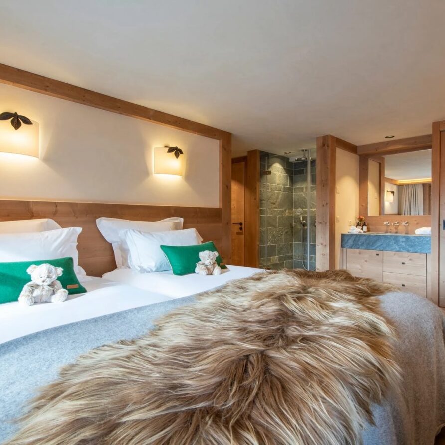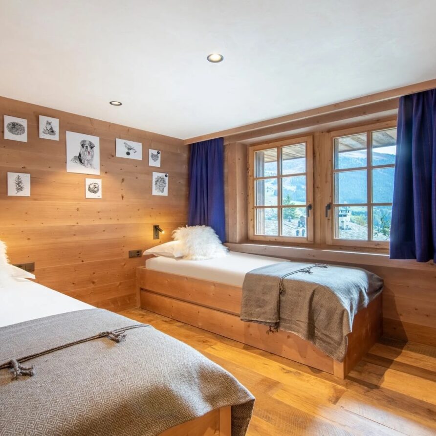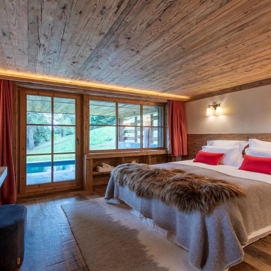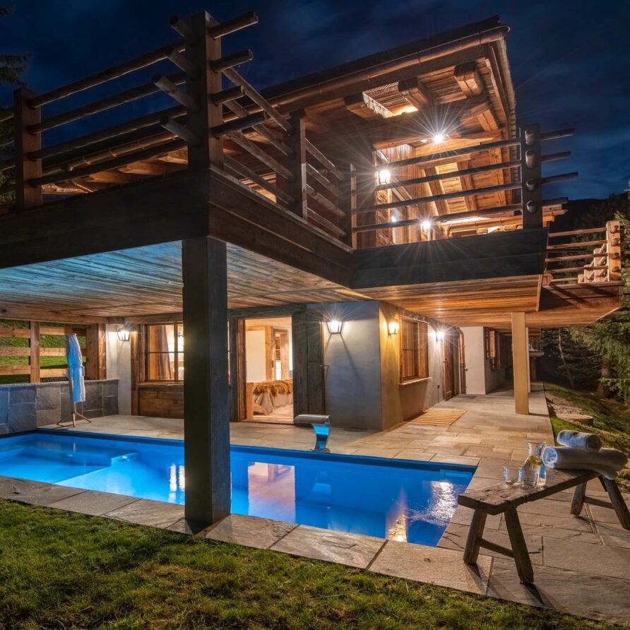 This charming alpine holiday escape spread across two levels can welcome up to 8 guests, and thus ideally suited for a family. The chalet includes 4 restful bedrooms and extraordinary sun-drenched valley views from various balconies. But the private homes piece de resistance is its partial covered heated outdoor pool. This is an ideal vacation retreat for ski holidays with excellent luxurious facilities on offer.