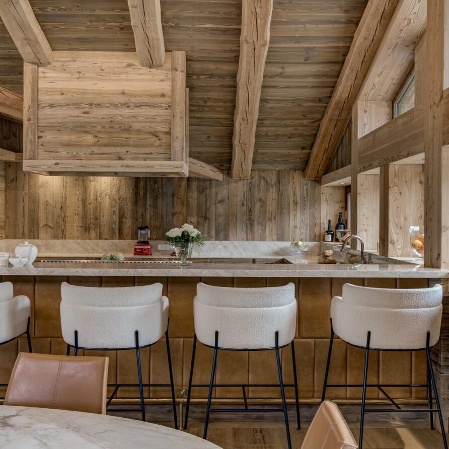 The open kitchen, adorned with high-quality appliances, serves as a focal point of culinary creativity. A sleek kitchen bar, accompanied by inviting bar stools, provides a cozy spot for onlookers to observe the culinary magic unfold, all while delectable aromas waft through the air. Whether you opt for self-catering or book the family chalet catered, this inviting space promises unforgettable culinary experiences and cherished moments.