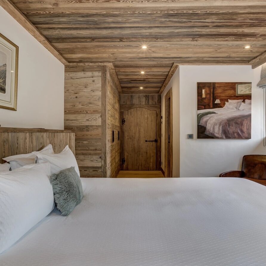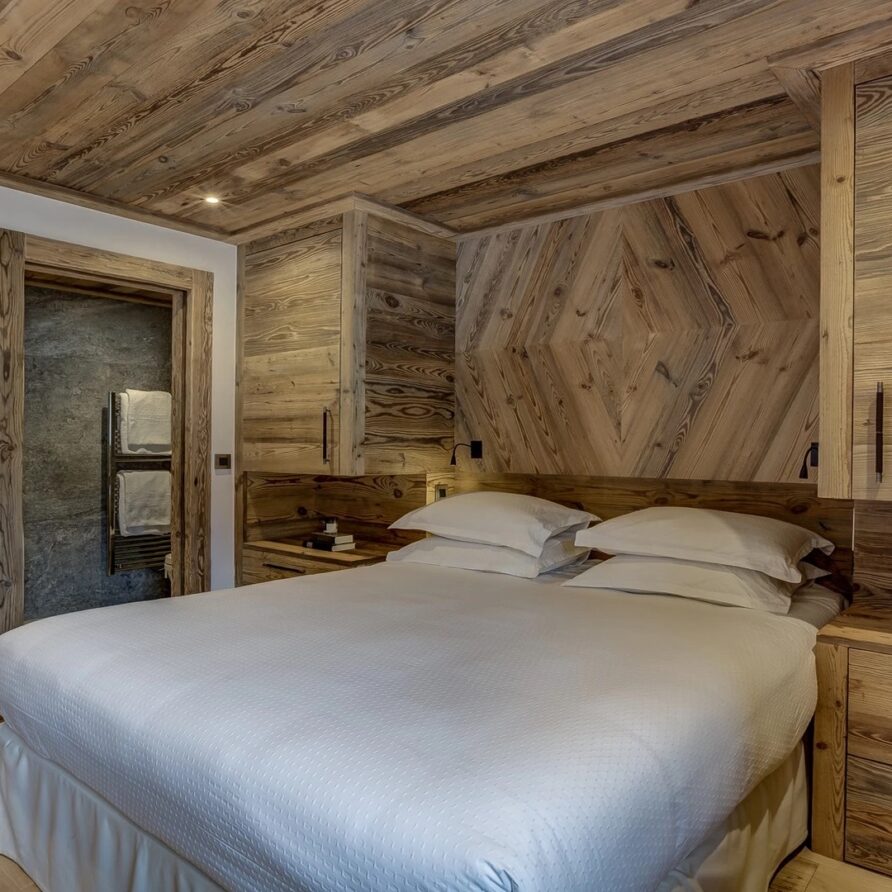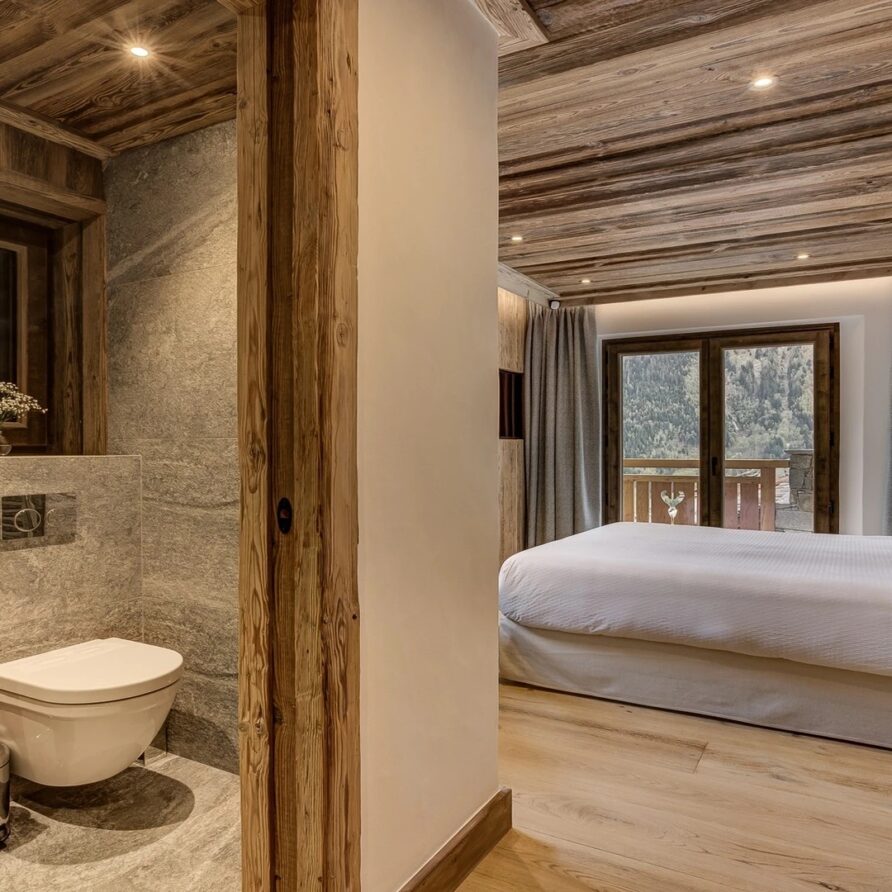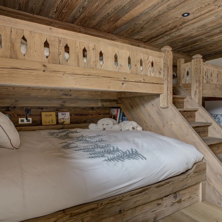 Sleeping quarters span both floors, offering a haven of tranquillity. The master Suite boasts a lavish marble en-suite bathroom, while four double bedrooms each feature en-suite facilities, exuding alpine charm with a modern twist. A children’s bunk bedroom accommodating up to six guests with its cozy ambiance and en-suite convenience.