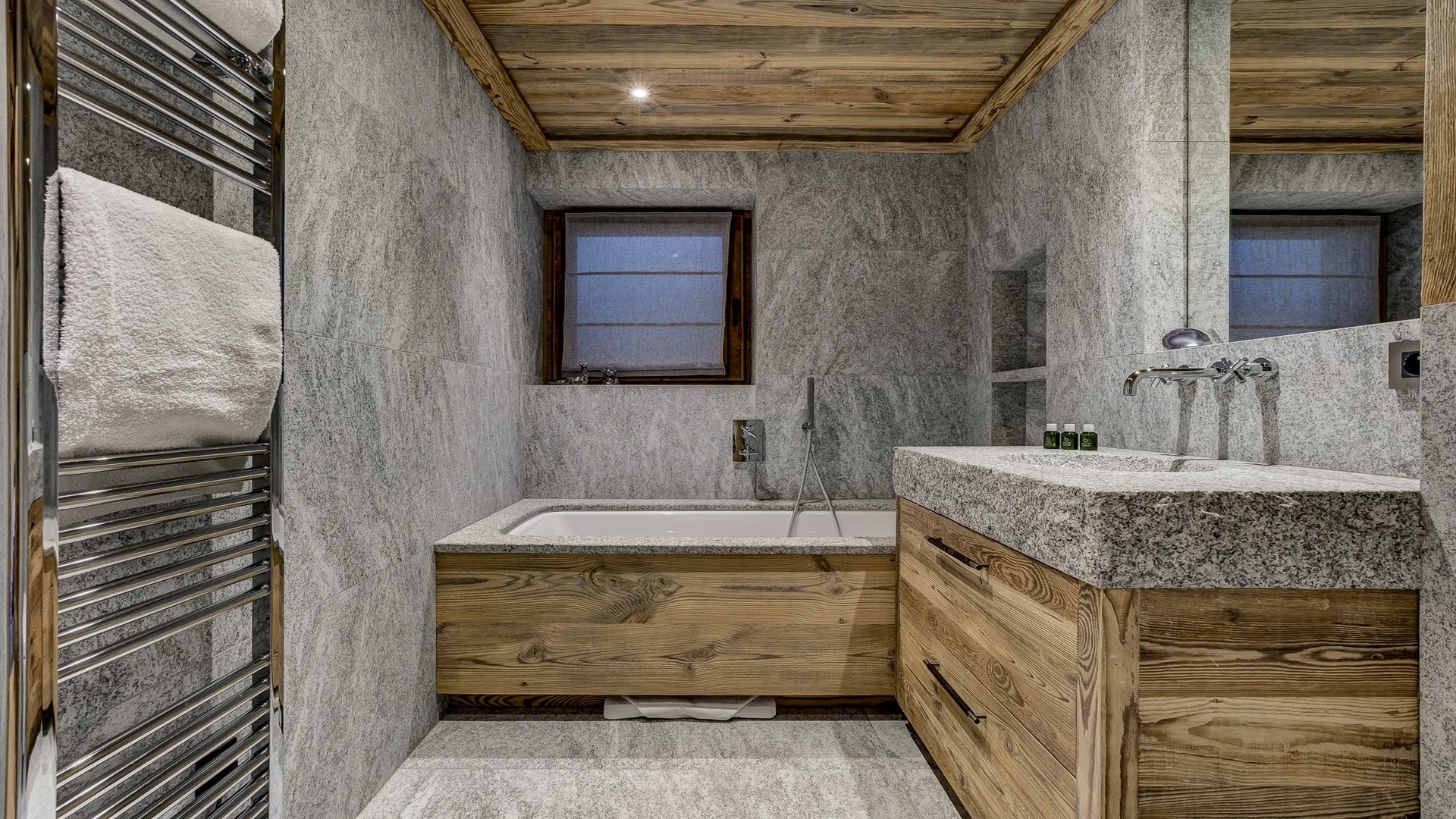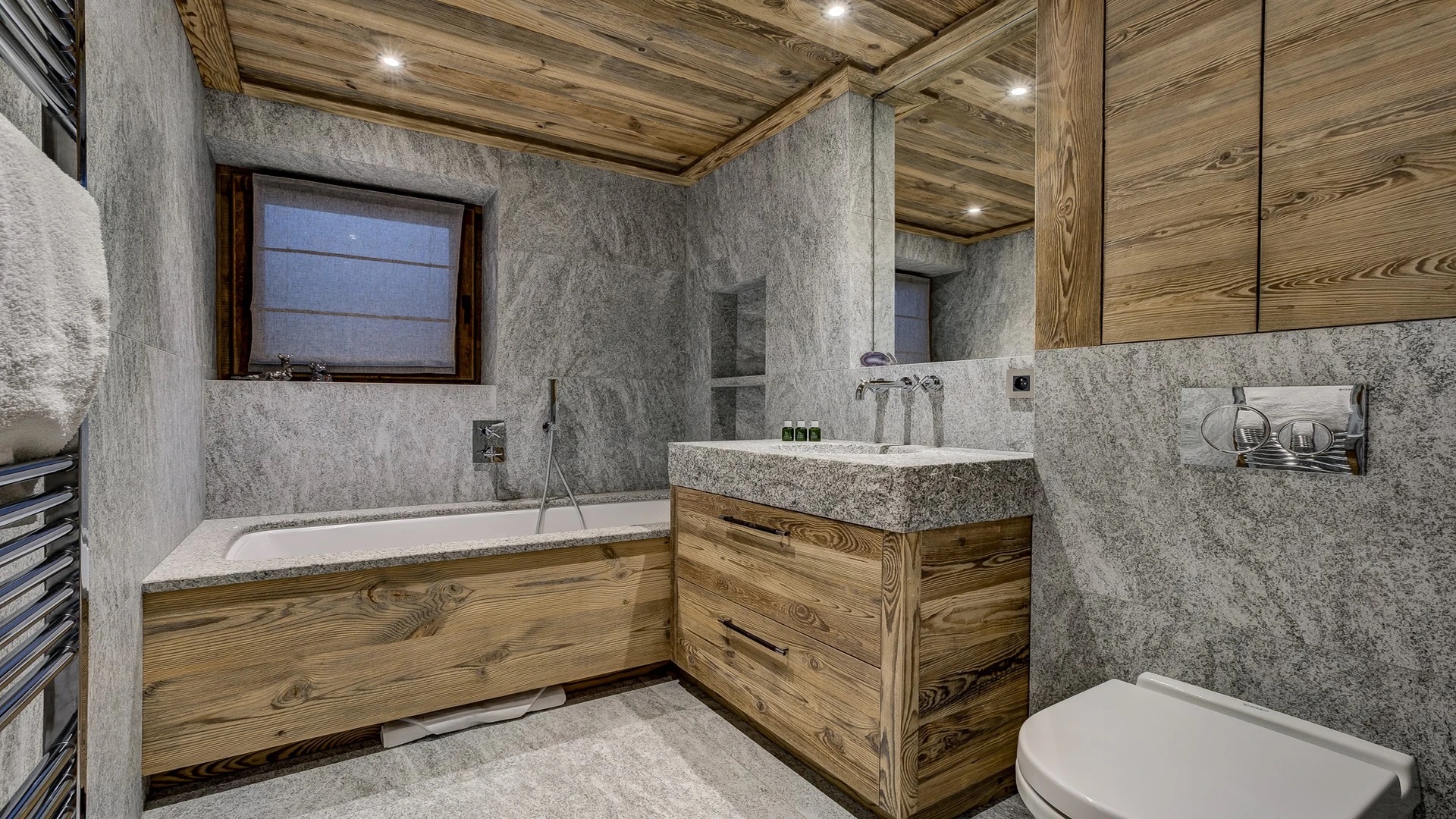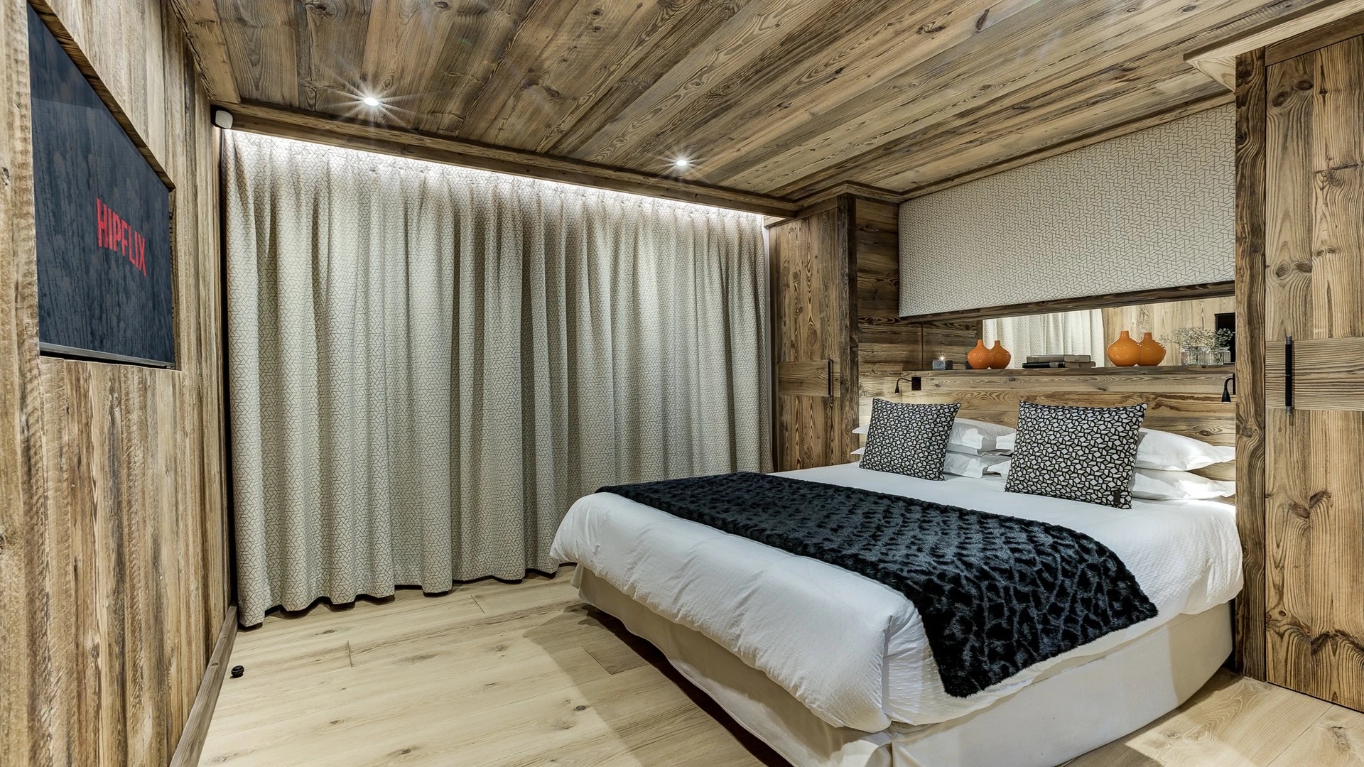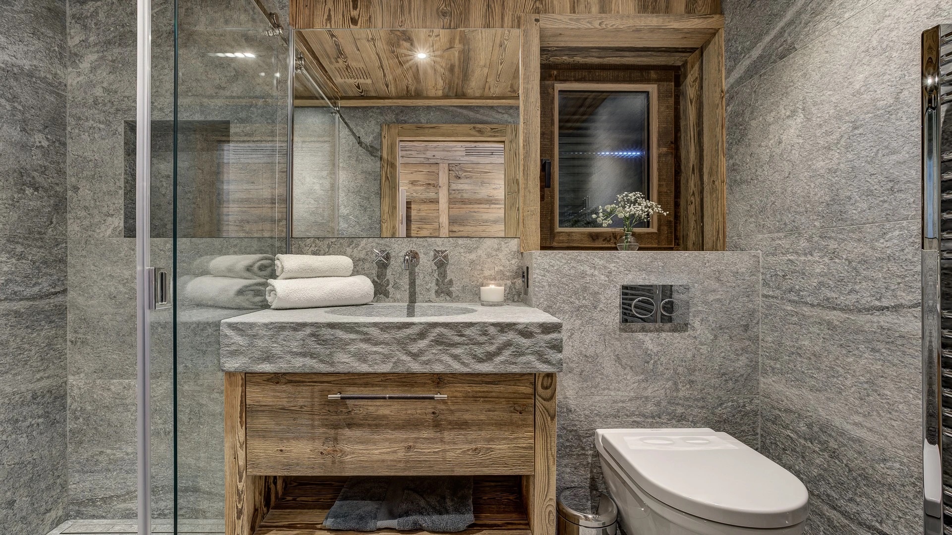 Sleeping quarters span both floors, offering a haven of tranquillity. The master Suite boasts a lavish marble en-suite bathroom, while four double bedrooms each feature en-suite facilities, exuding alpine charm with a modern twist. A children’s bunk bedroom accommodating up to six guests with its cozy ambiance and en-suite convenience.