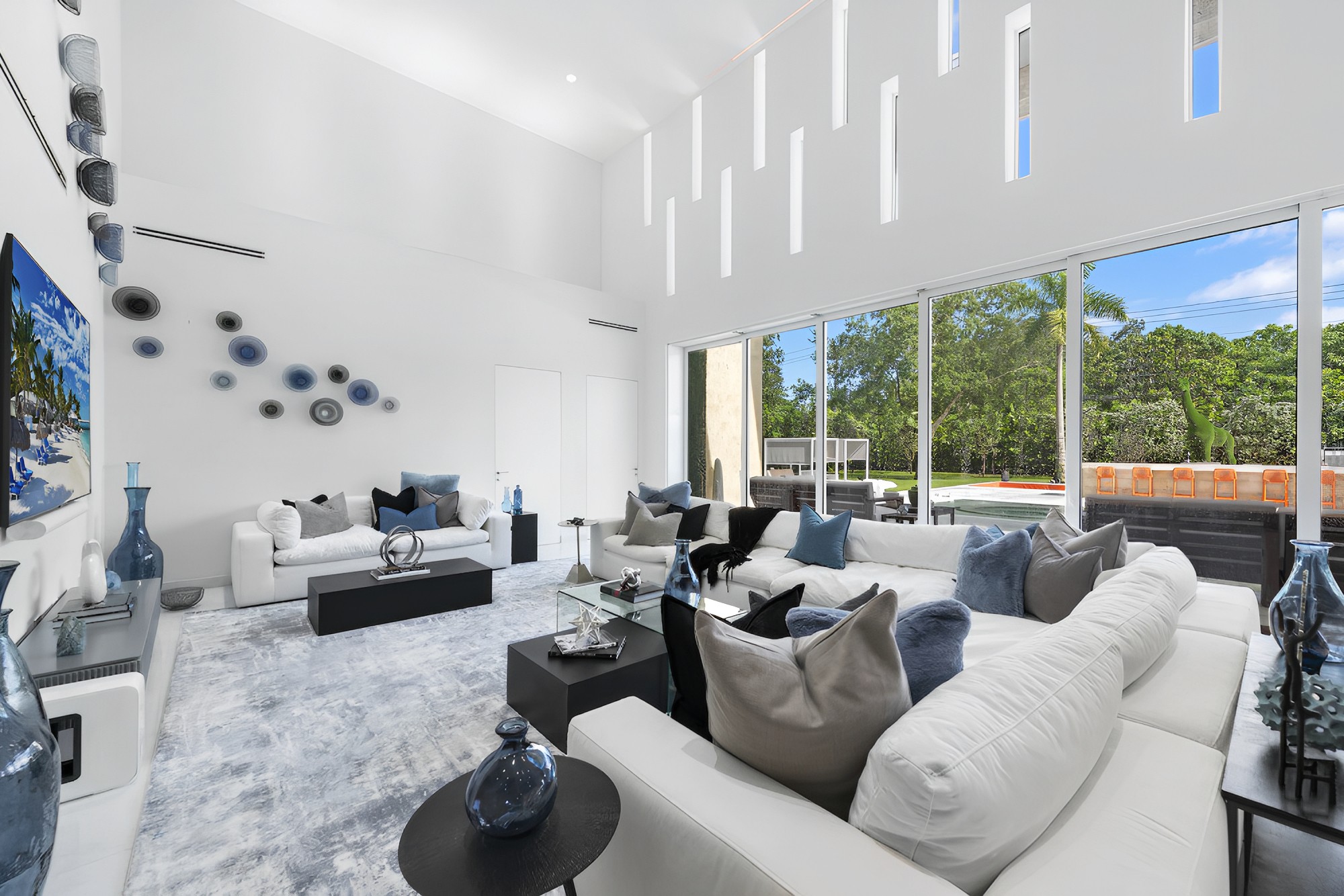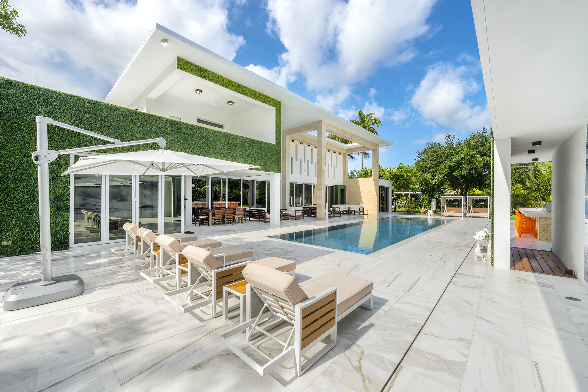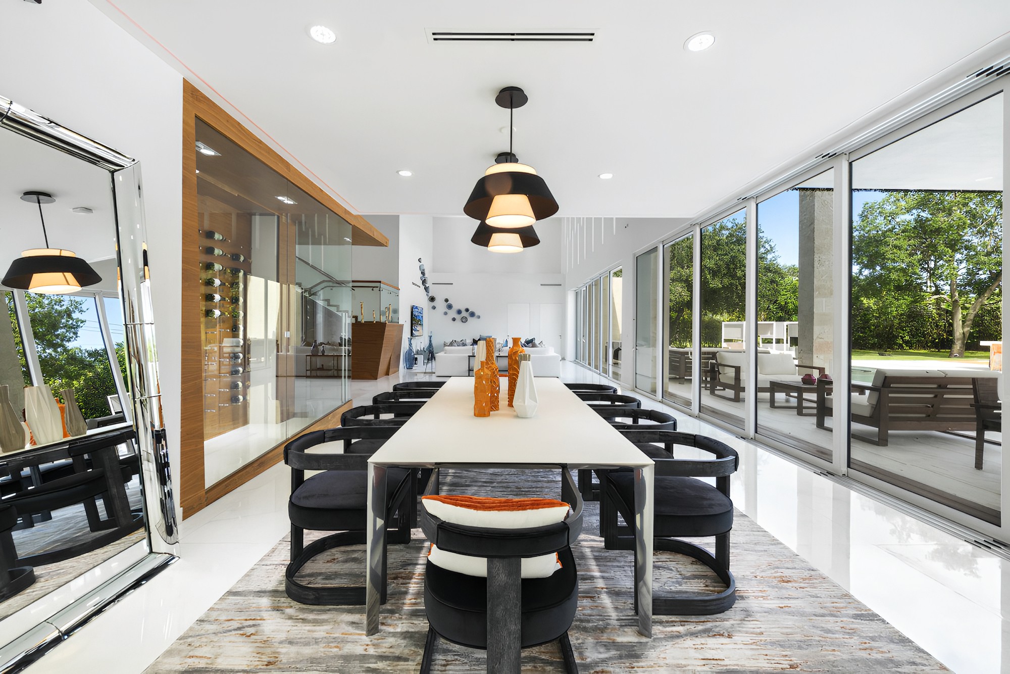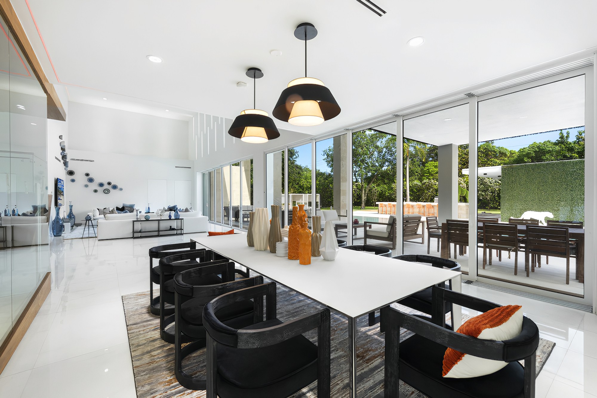 Experience seamless indoor/outdoor living with sliding glass doors opening to a lovely pool and integrated Jacuzzi. This outdoor space has it all with covered and open living rooms, a dedicated cabana bath and with an incredible lighting that ties in modern flair and nature.