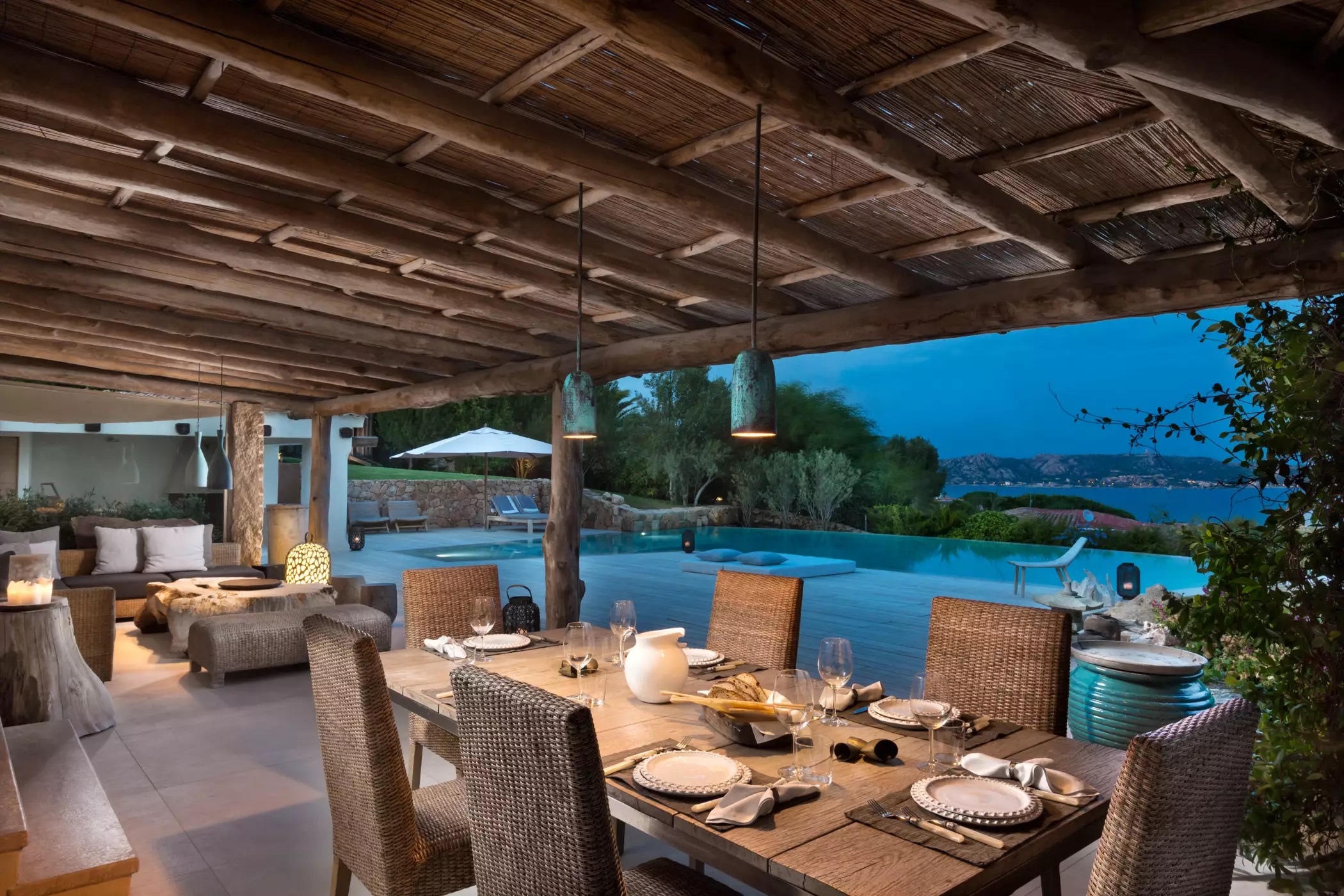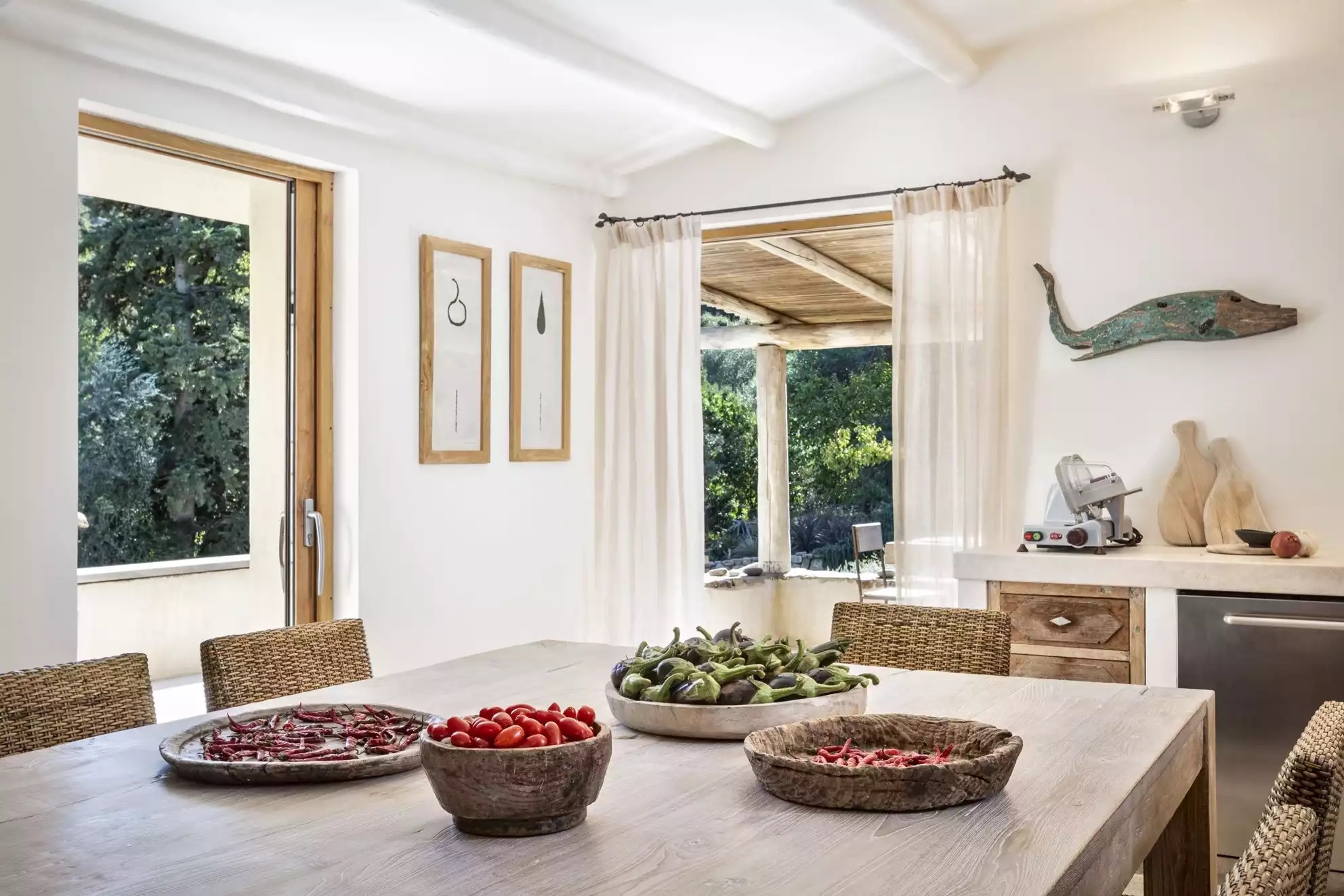 Luxury Villa Capri with Pool has a big living room and a large private terrace, furnished with tables and chairs from where you can admire a beautiful view of the sea. Here, you will also find an outdoor kitchen, well and fully equipped and an outdoor dining table. Around the garden, the owners have organized a private path, ideal for jogging or walks in the moonlight.