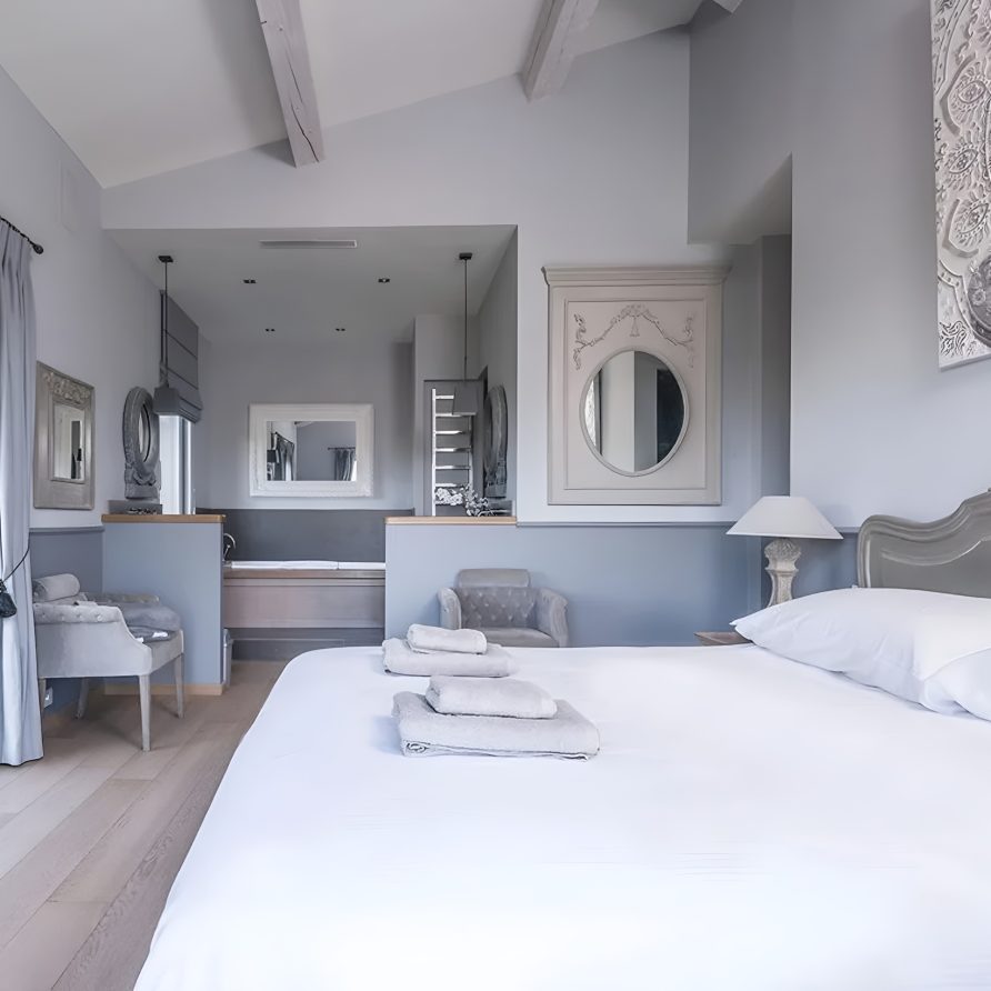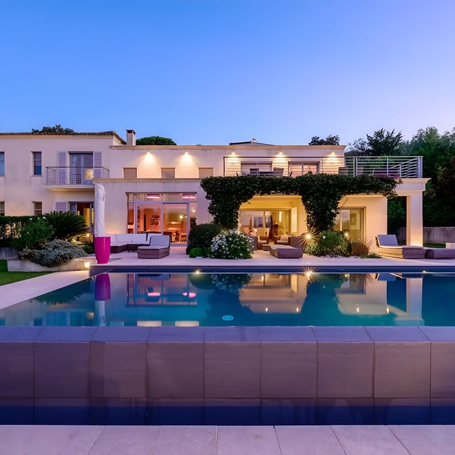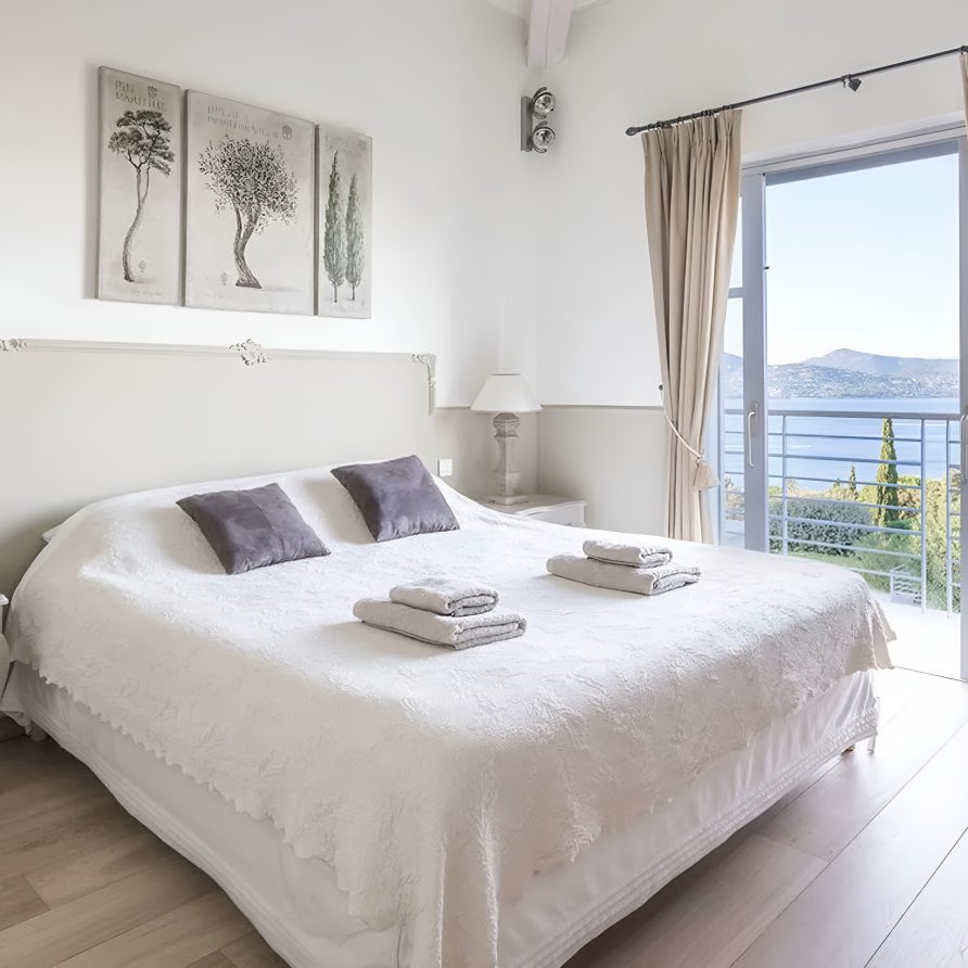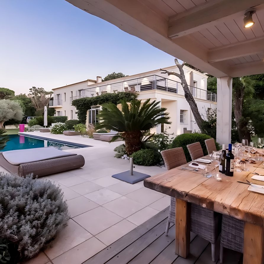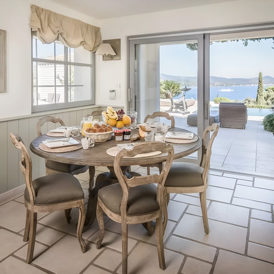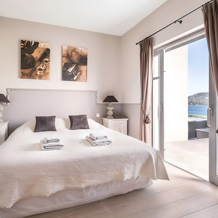 Outside, villa offers something for everyone. A haven for relaxation, the heavenly infinity swimming pool is something to be desired and is the perfect place to cool down after soaking up the sun on the loungers. St. Tropez bay, port and town, in all their alluring beauty, can be surveyed from the bubbles of the outdoor hot tub, complimented with a sip of something nice or afternoon snack from the nearby pool house. The pool house comes complete with a Hammam, shower and kitchenette, saving you the short trip inside the villa. The peace and tranquillity of the private gardens, complete with palm and olive trees, contribute to the overall calming environment radiated by the outside space. Shady terraces and a boules court can also be found out here, in addition to a fire-pit which enables you to stargaze across the St. Tropez bay long after the sun has set.