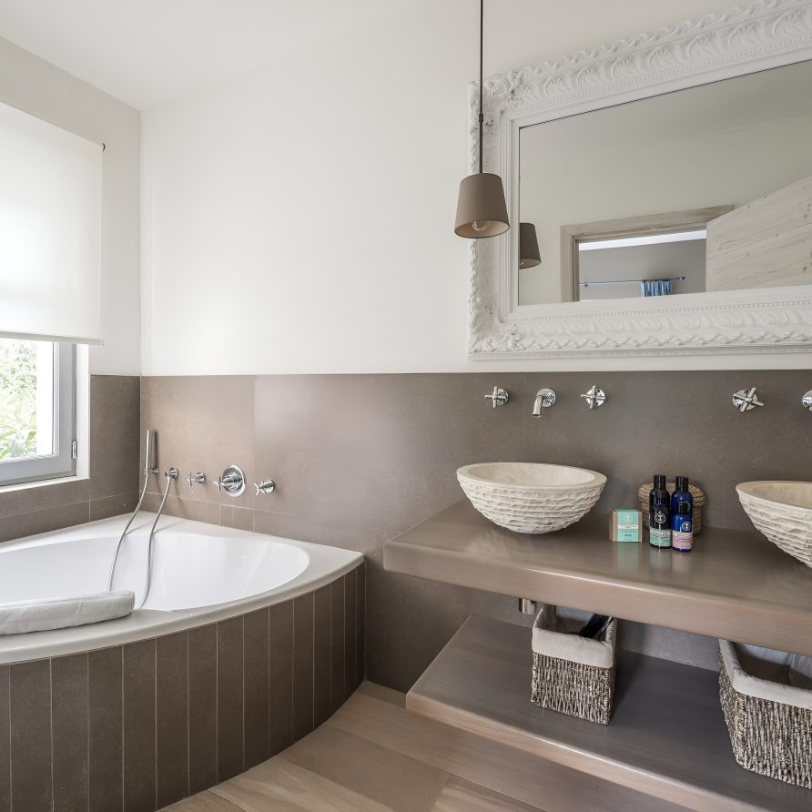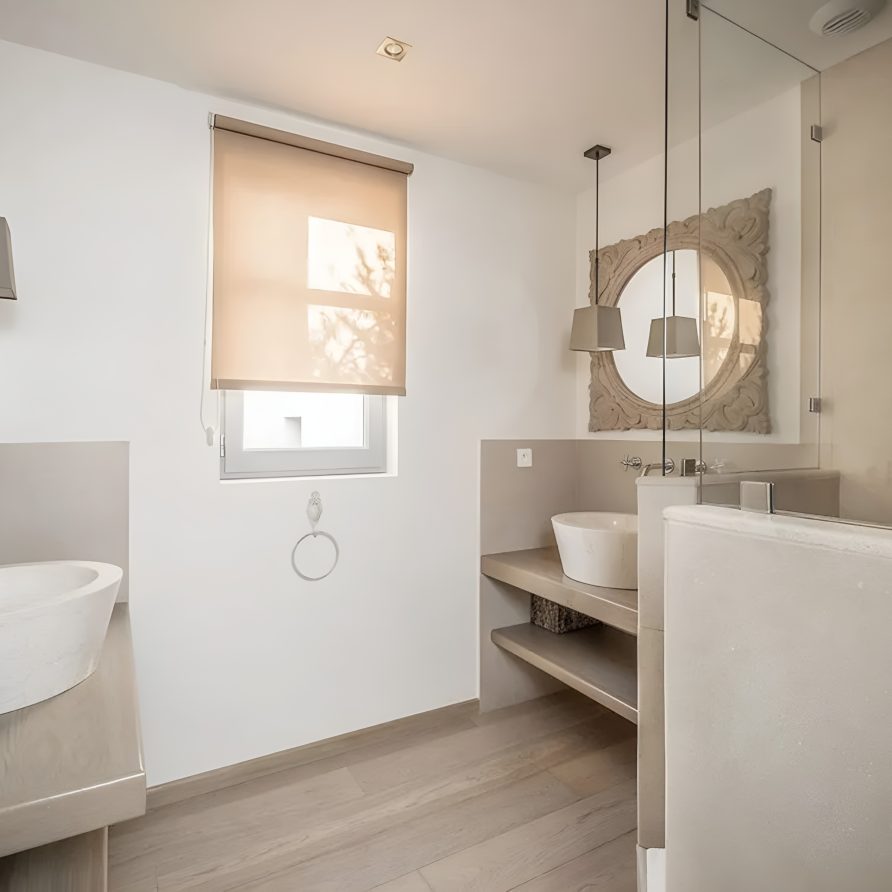 In total, the villa can accommodate 12 guests across 6 spacious bedrooms found on the lower and ground floors of the property. All bedrooms benefit from king-size double beds and en-suite facilities, and the majority also feature balcony/terrace access. 4 bedrooms are situated on the villa’s ground floor, with 2 remaining bedrooms on the lower ground floor. The master bedroom comes complete with balcony access, a dressing room and an en-suite bathroom with separate shower.