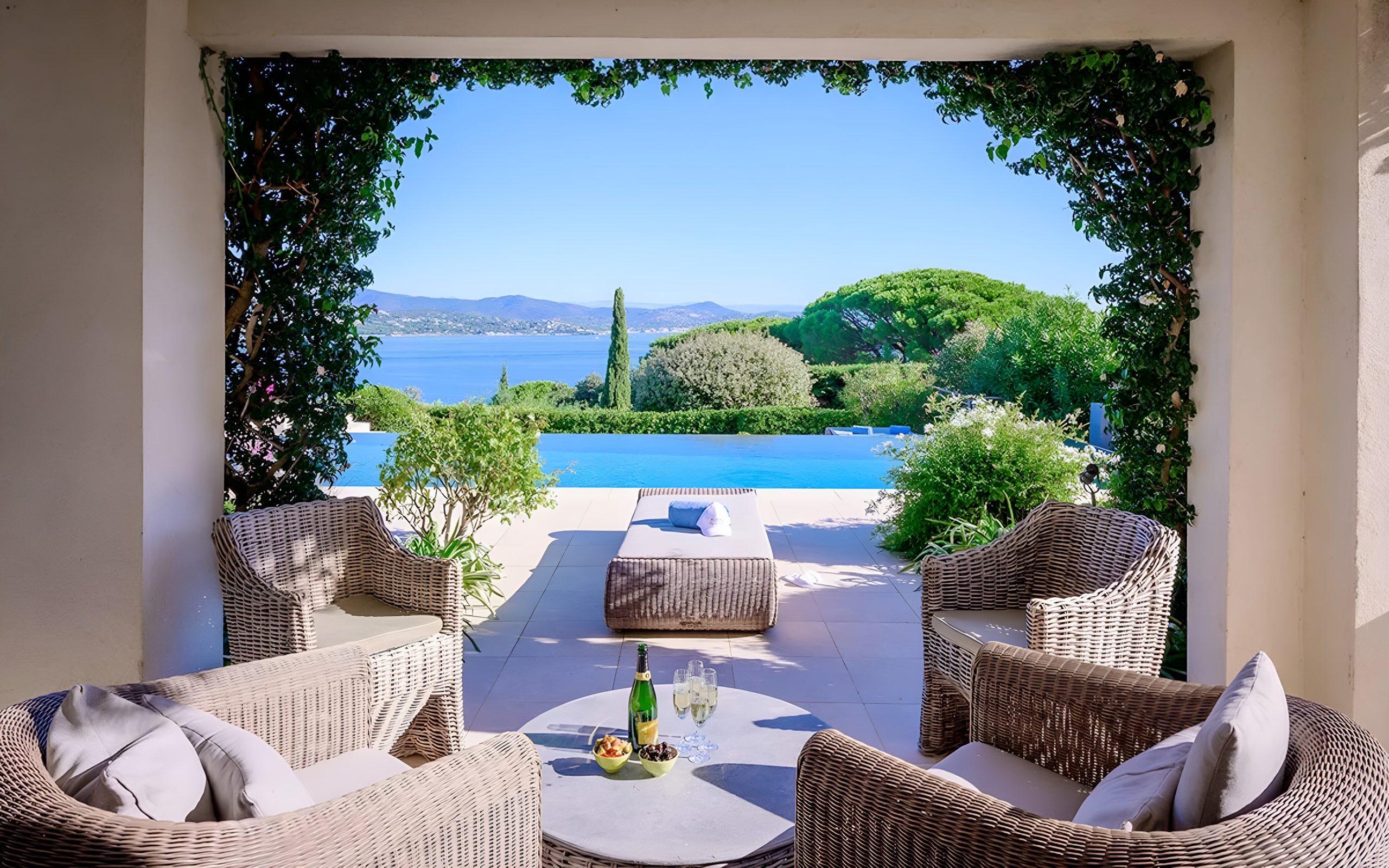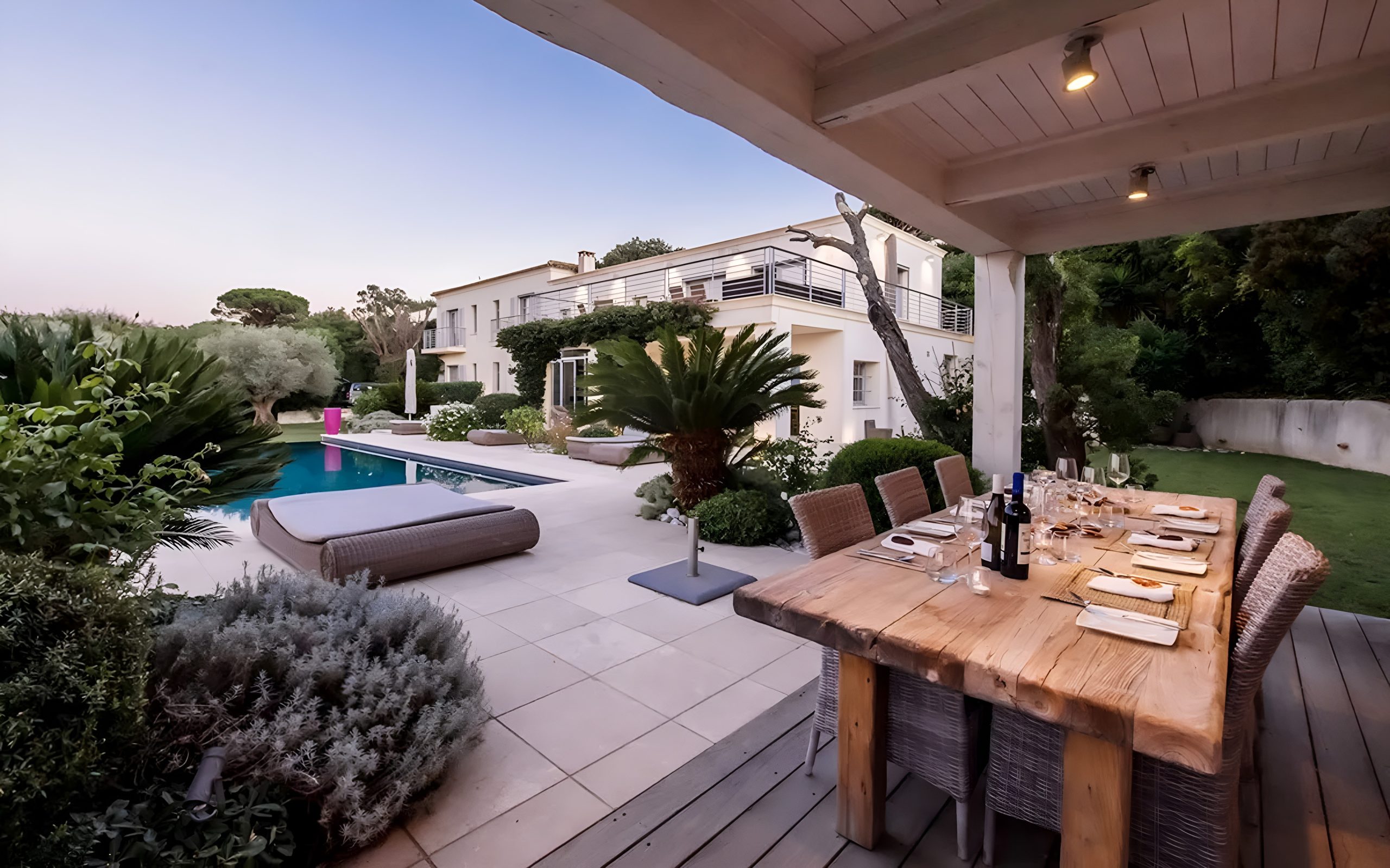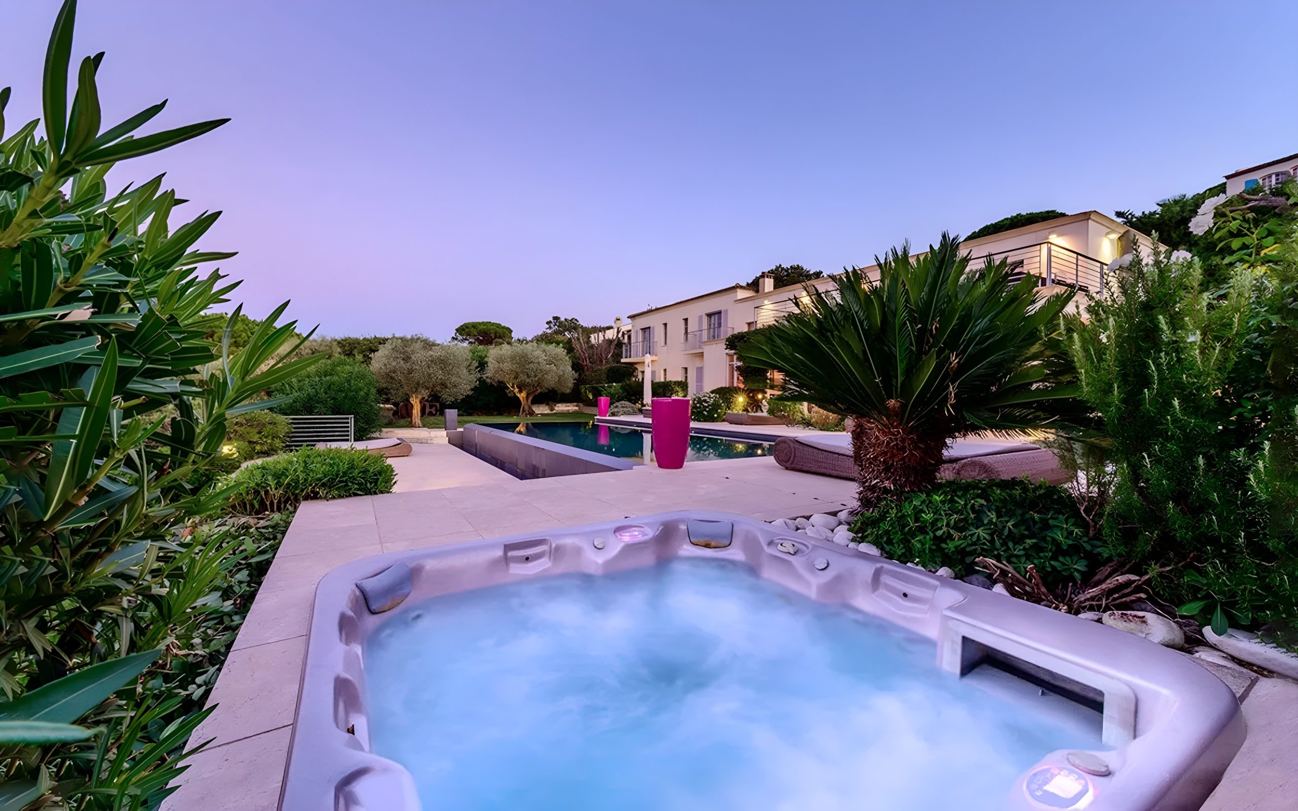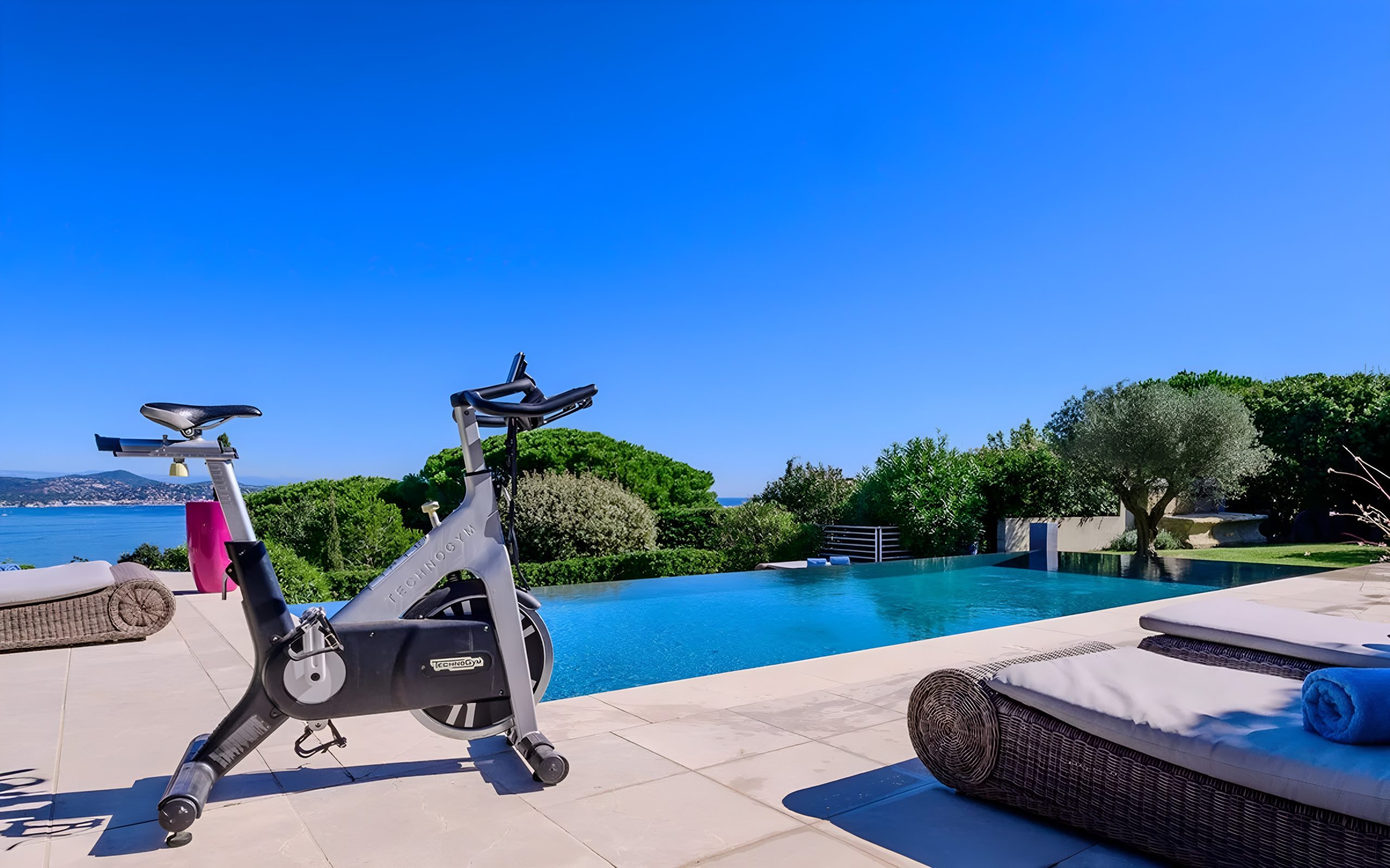 Outside, villa offers something for everyone. A haven for relaxation, the heavenly infinity swimming pool is something to be desired and is the perfect place to cool down after soaking up the sun on the loungers. St. Tropez bay, port and town, in all their alluring beauty, can be surveyed from the bubbles of the outdoor hot tub, complimented with a sip of something nice or afternoon snack from the nearby pool house. The pool house comes complete with a Hammam, shower and kitchenette, saving you the short trip inside the villa. The peace and tranquillity of the private gardens, complete with palm and olive trees, contribute to the overall calming environment radiated by the outside space. Shady terraces and a boules court can also be found out here, in addition to a fire-pit which enables you to stargaze across the St. Tropez bay long after the sun has set.