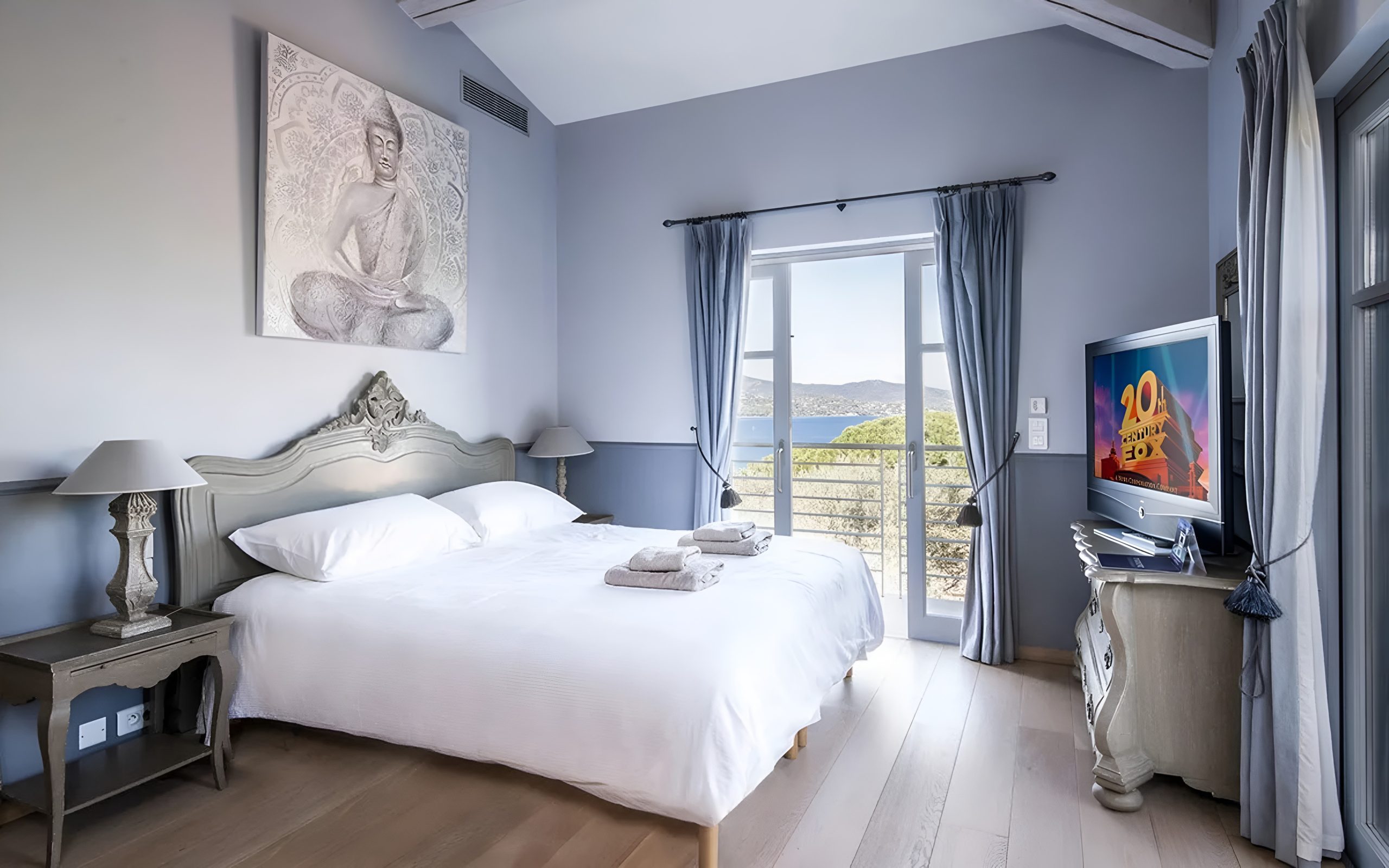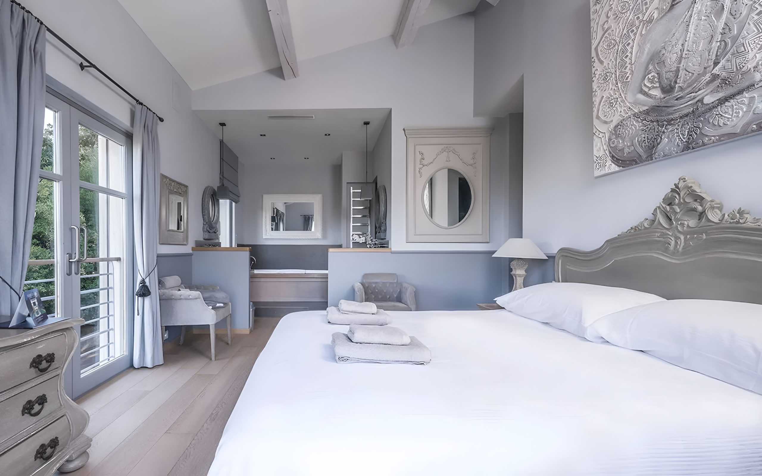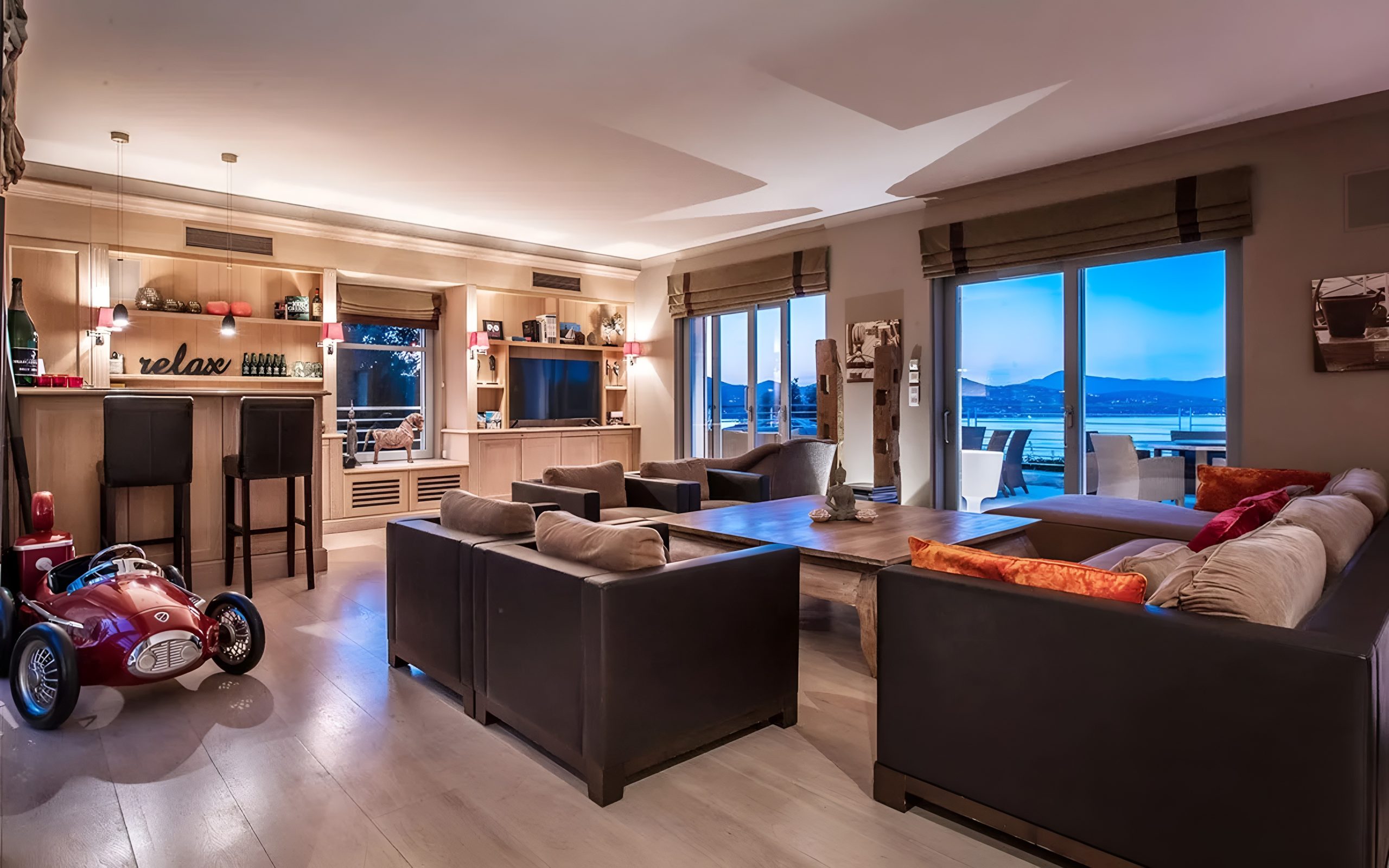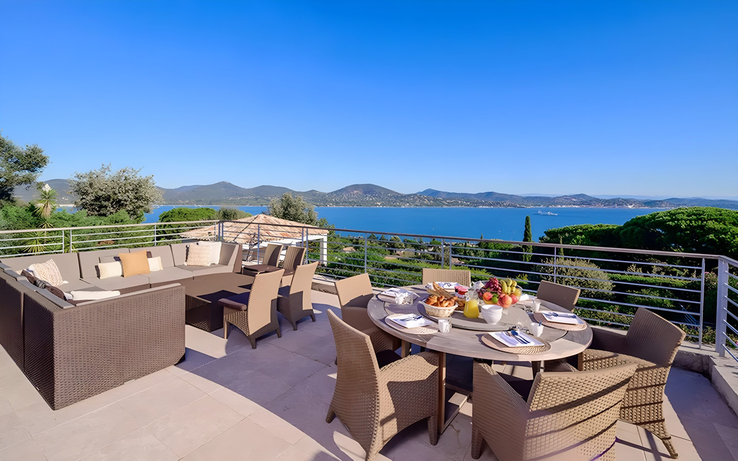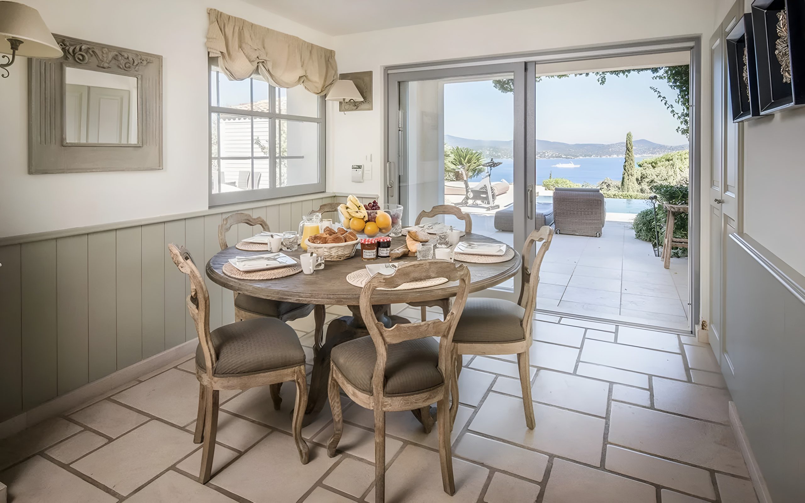 Outside, villa offers something for everyone. A haven for relaxation, the heavenly infinity swimming pool is something to be desired and is the perfect place to cool down after soaking up the sun on the loungers. St. Tropez bay, port and town, in all their alluring beauty, can be surveyed from the bubbles of the outdoor hot tub, complimented with a sip of something nice or afternoon snack from the nearby pool house. The pool house comes complete with a Hammam, shower and kitchenette, saving you the short trip inside the villa. The peace and tranquillity of the private gardens, complete with palm and olive trees, contribute to the overall calming environment radiated by the outside space. Shady terraces and a boules court can also be found out here, in addition to a fire-pit which enables you to stargaze across the St. Tropez bay long after the sun has set.
