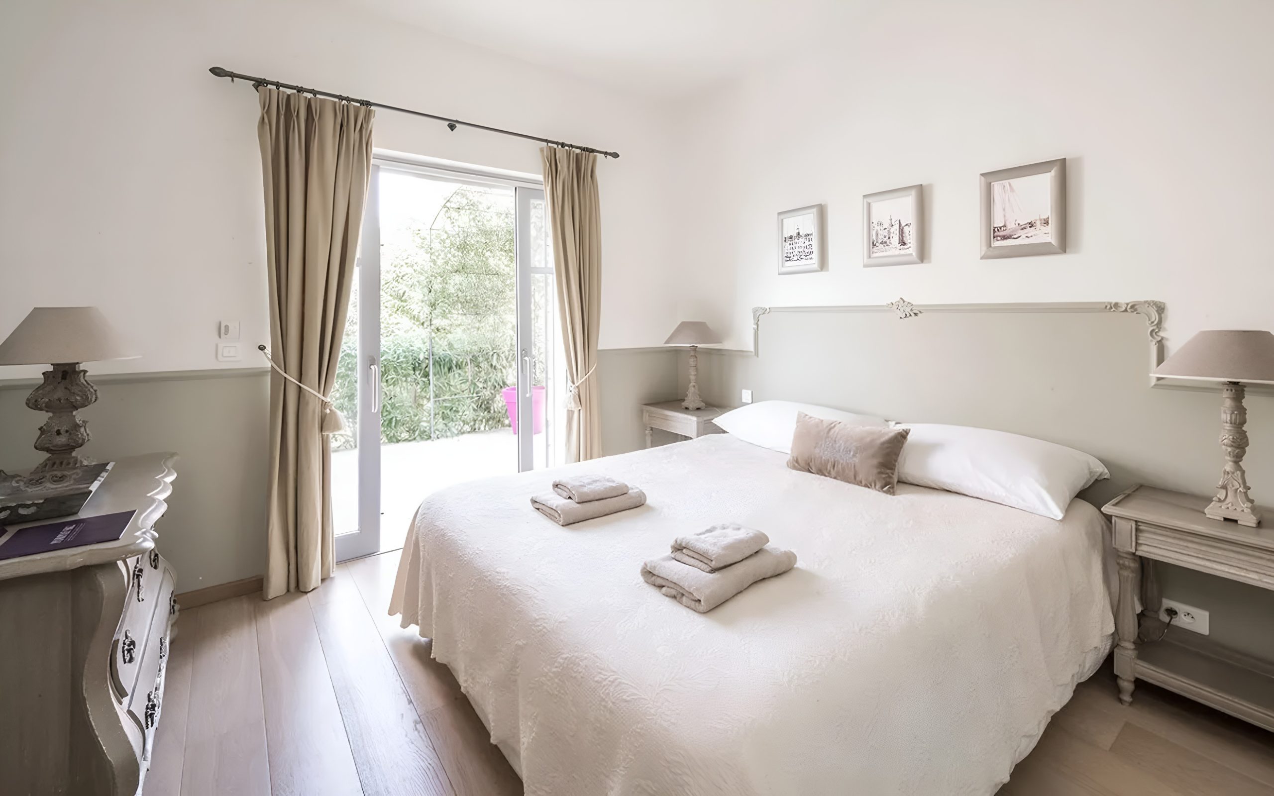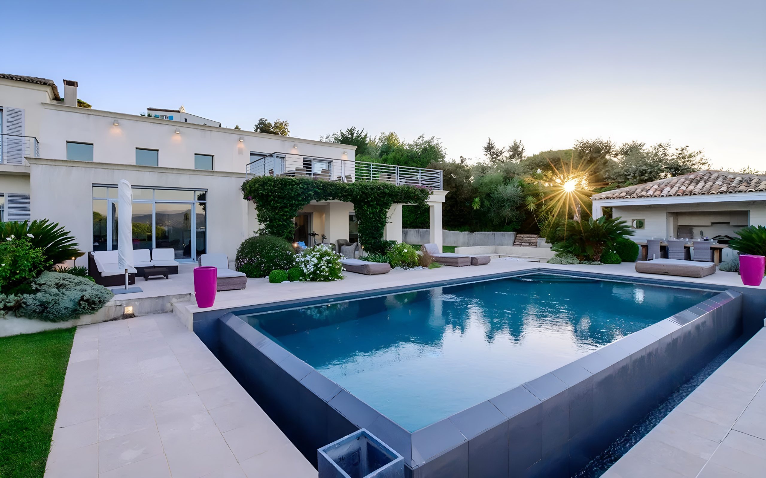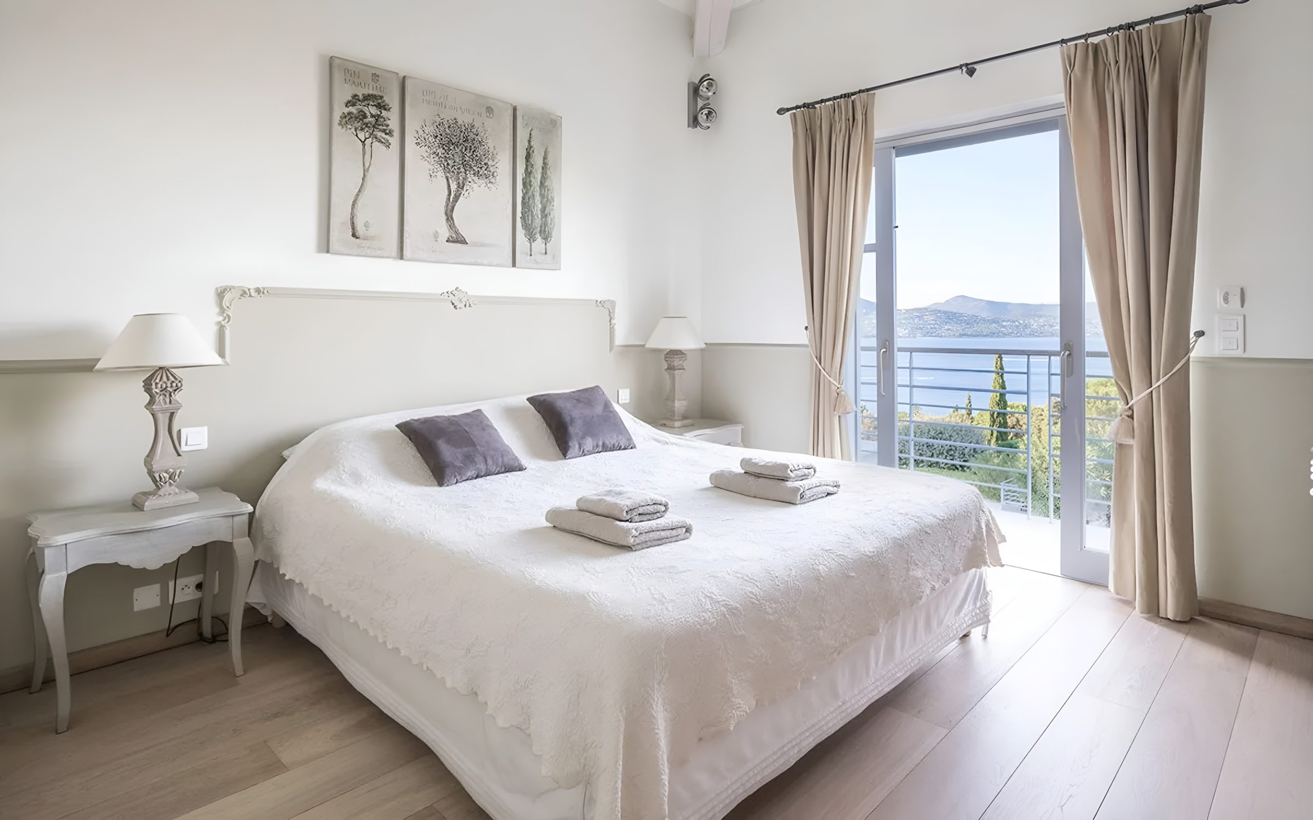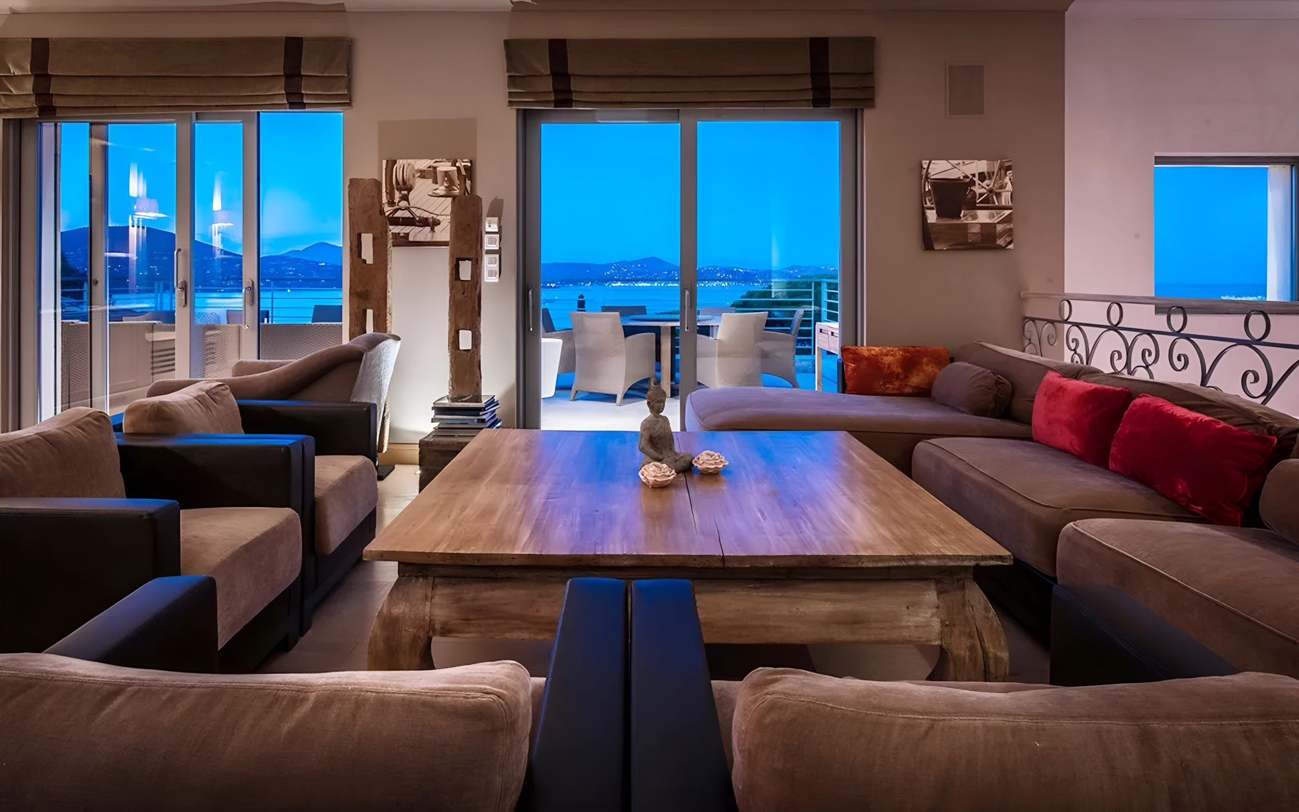 Outside, villa offers something for everyone. A haven for relaxation, the heavenly infinity swimming pool is something to be desired and is the perfect place to cool down after soaking up the sun on the loungers. St. Tropez bay, port and town, in all their alluring beauty, can be surveyed from the bubbles of the outdoor hot tub, complimented with a sip of something nice or afternoon snack from the nearby pool house. The pool house comes complete with a Hammam, shower and kitchenette, saving you the short trip inside the villa. The peace and tranquillity of the private gardens, complete with palm and olive trees, contribute to the overall calming environment radiated by the outside space. Shady terraces and a boules court can also be found out here, in addition to a fire-pit which enables you to stargaze across the St. Tropez bay long after the sun has set.
