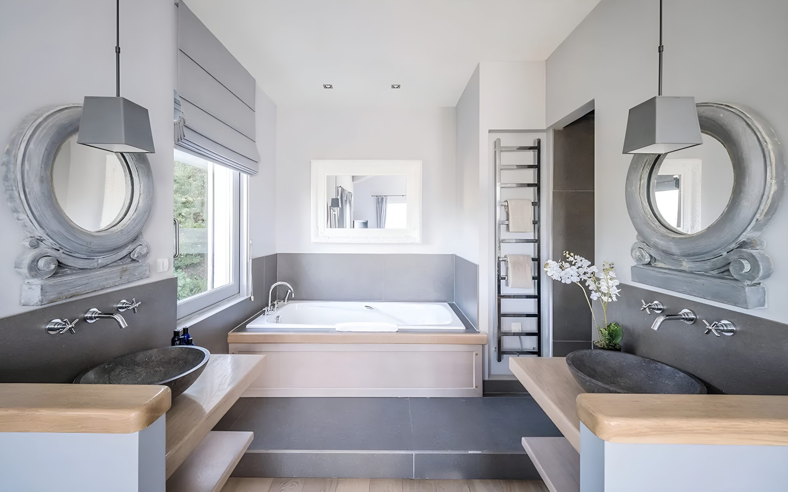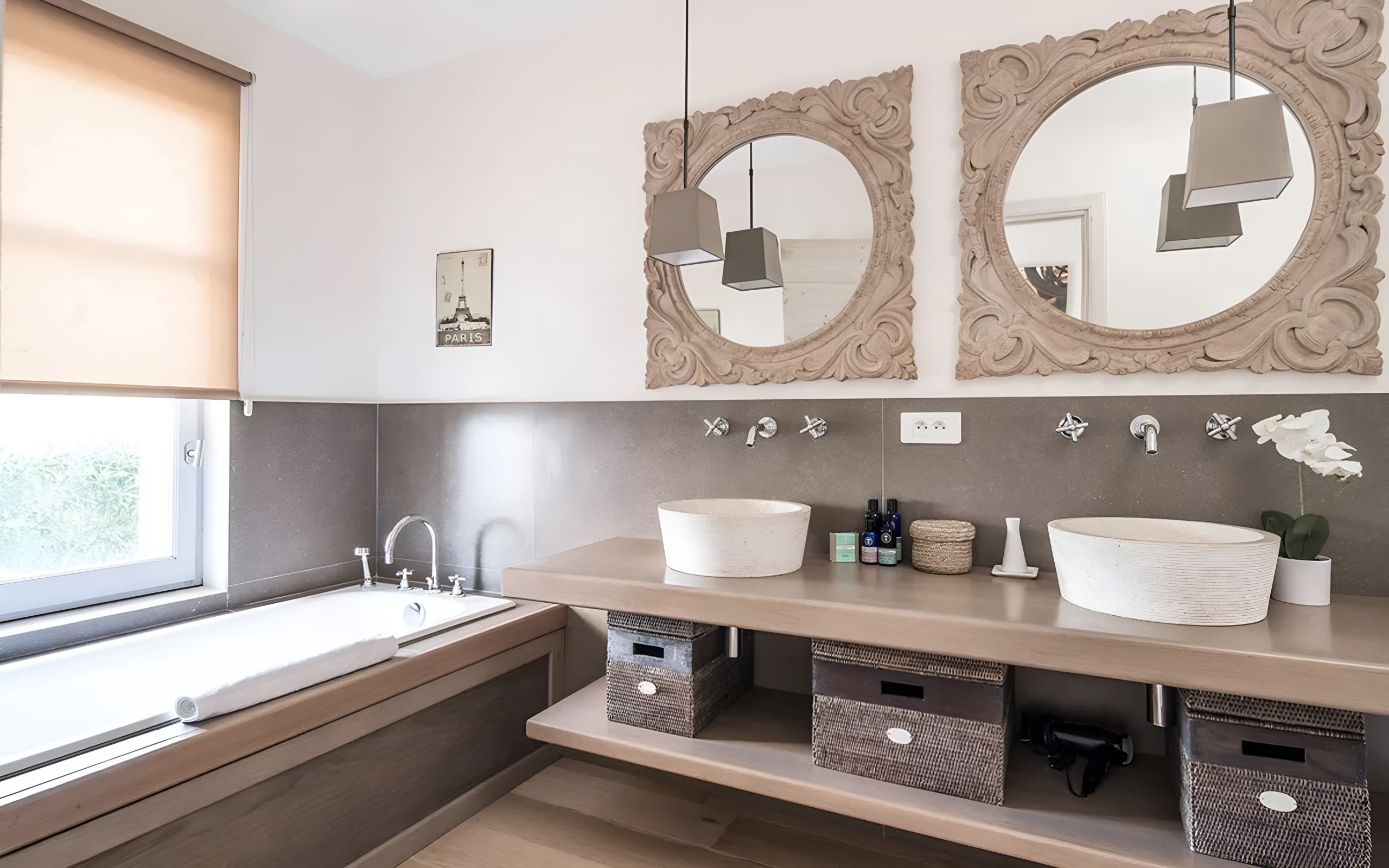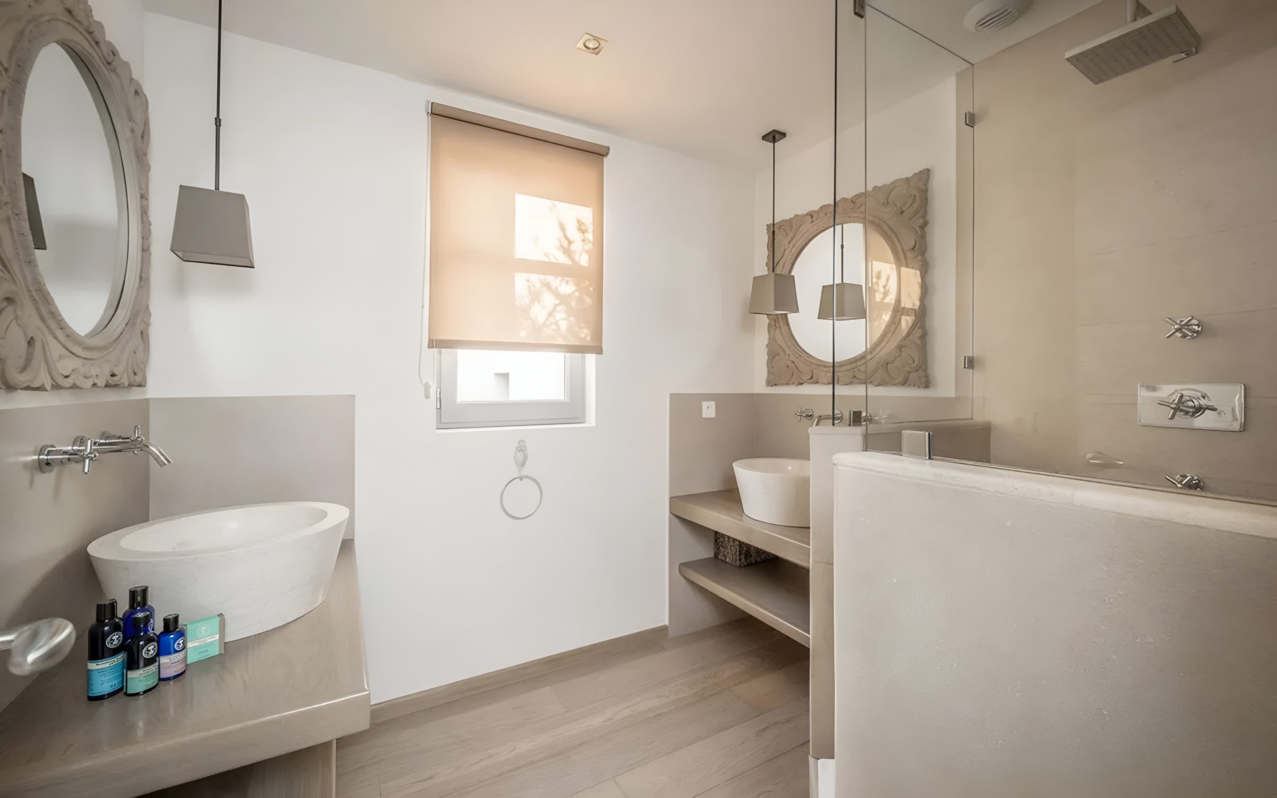 In total, the villa can accommodate 12 guests across 6 spacious bedrooms found on the lower and ground floors of the property. All bedrooms benefit from king-size double beds and en-suite facilities, and the majority also feature balcony/terrace access. 4 bedrooms are situated on the villa’s ground floor, with 2 remaining bedrooms on the lower ground floor. The master bedroom comes complete with balcony access, a dressing room and an en-suite bathroom with separate shower.