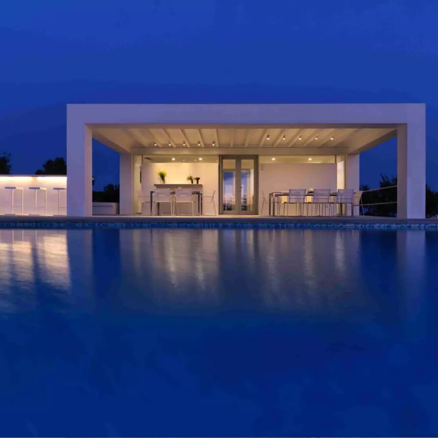 A unique property that plays with the colors of the sky reflecting on its vast pool and the white cubic formations of the local architecture, on which the sun reflects creating a canvas of shadow play, this villa will seduce you with its laid back comforts and unpretentious luxury.