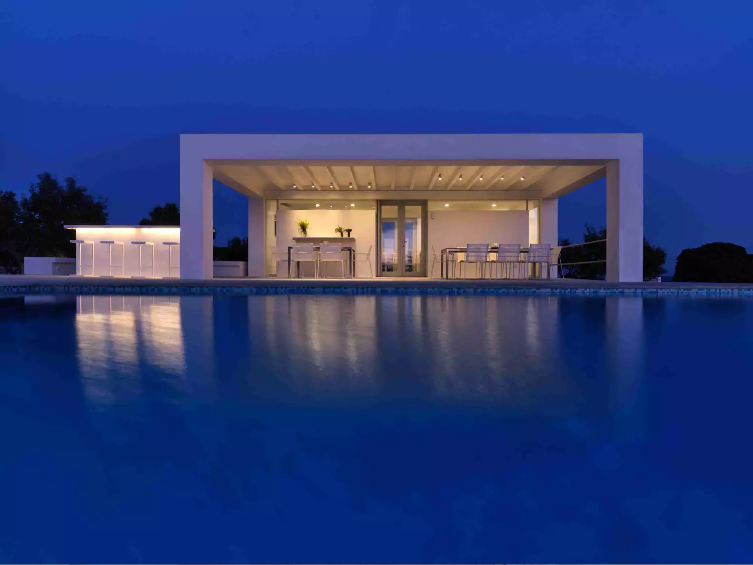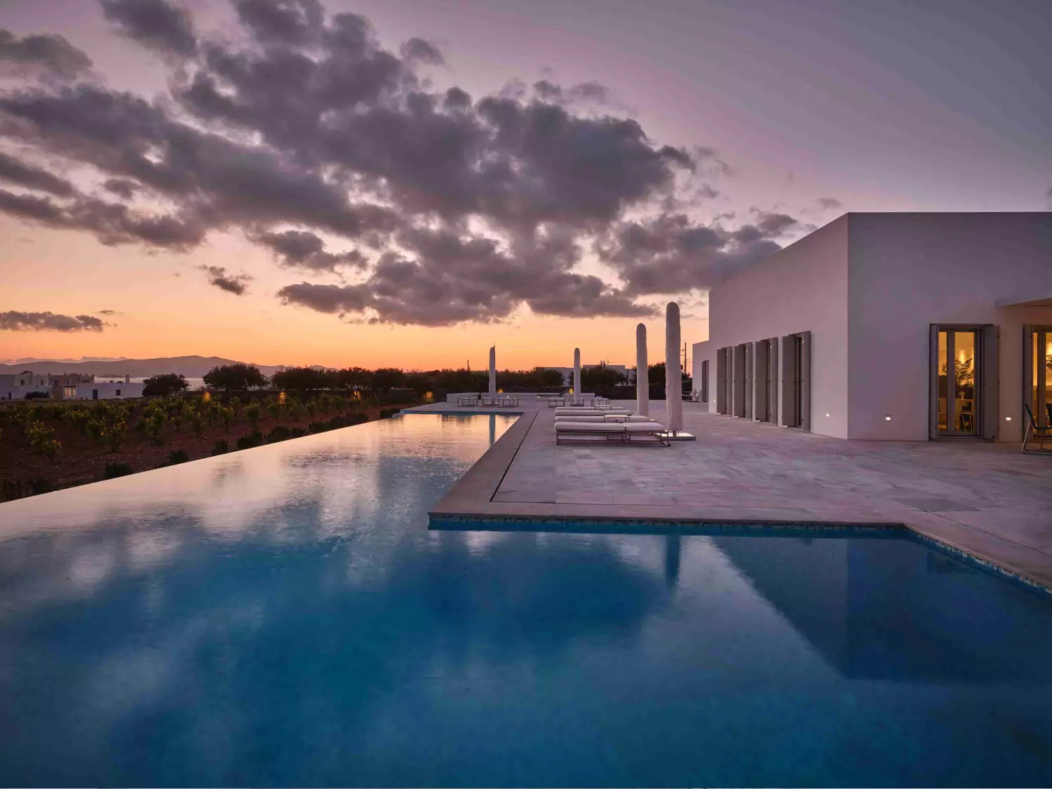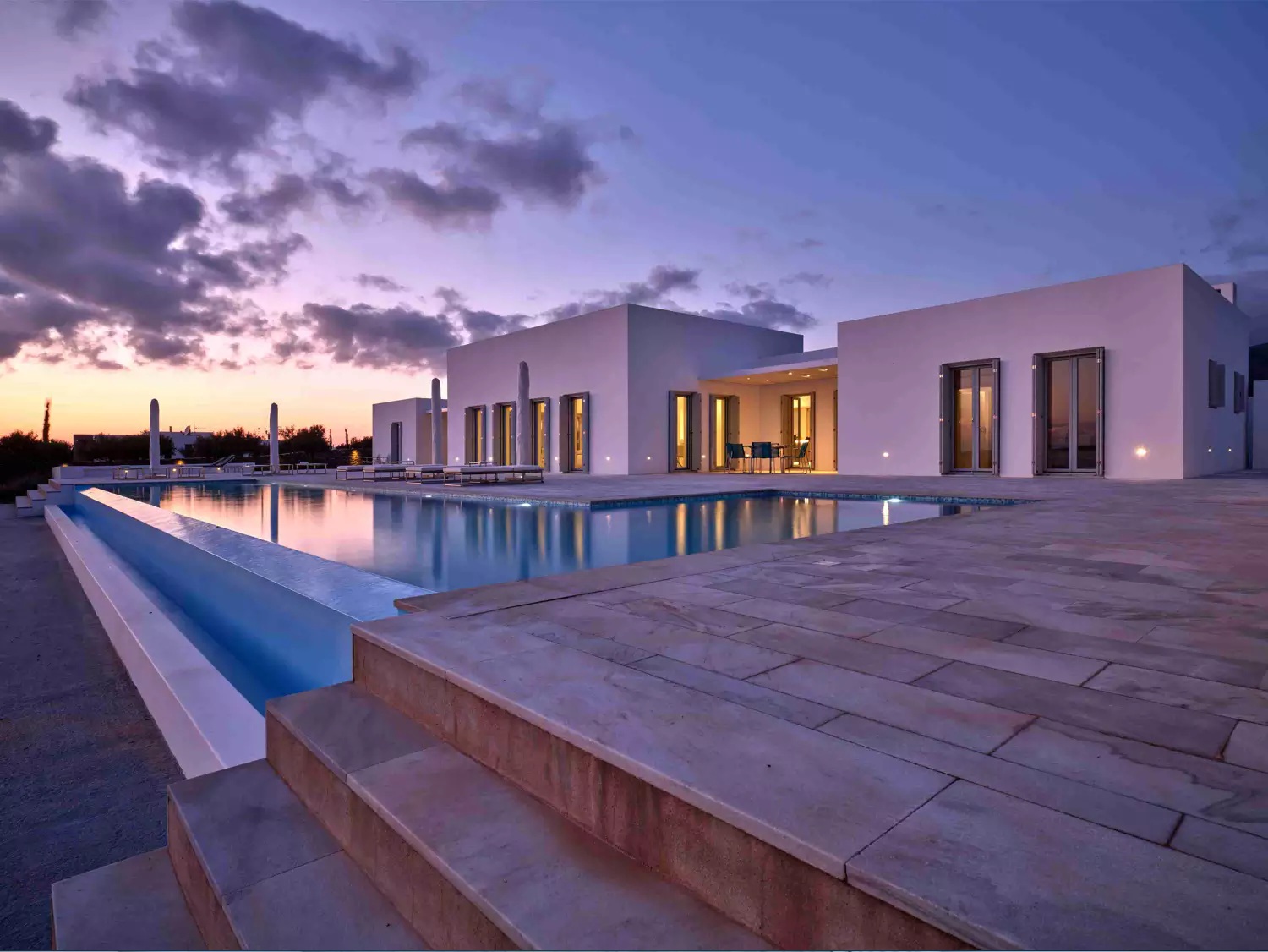 A unique property that plays with the colors of the sky reflecting on its vast pool and the white cubic formations of the local architecture, on which the sun reflects creating a canvas of shadow play, this villa will seduce you with its laid back comforts and unpretentious luxury.